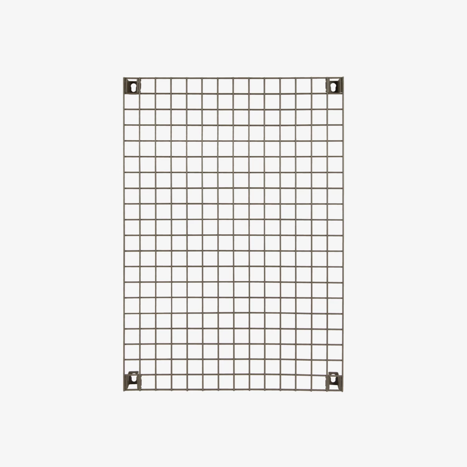Grüne Aufbewahrungstafel mit Gitternetz aus pulverbeschichtetem Metall.