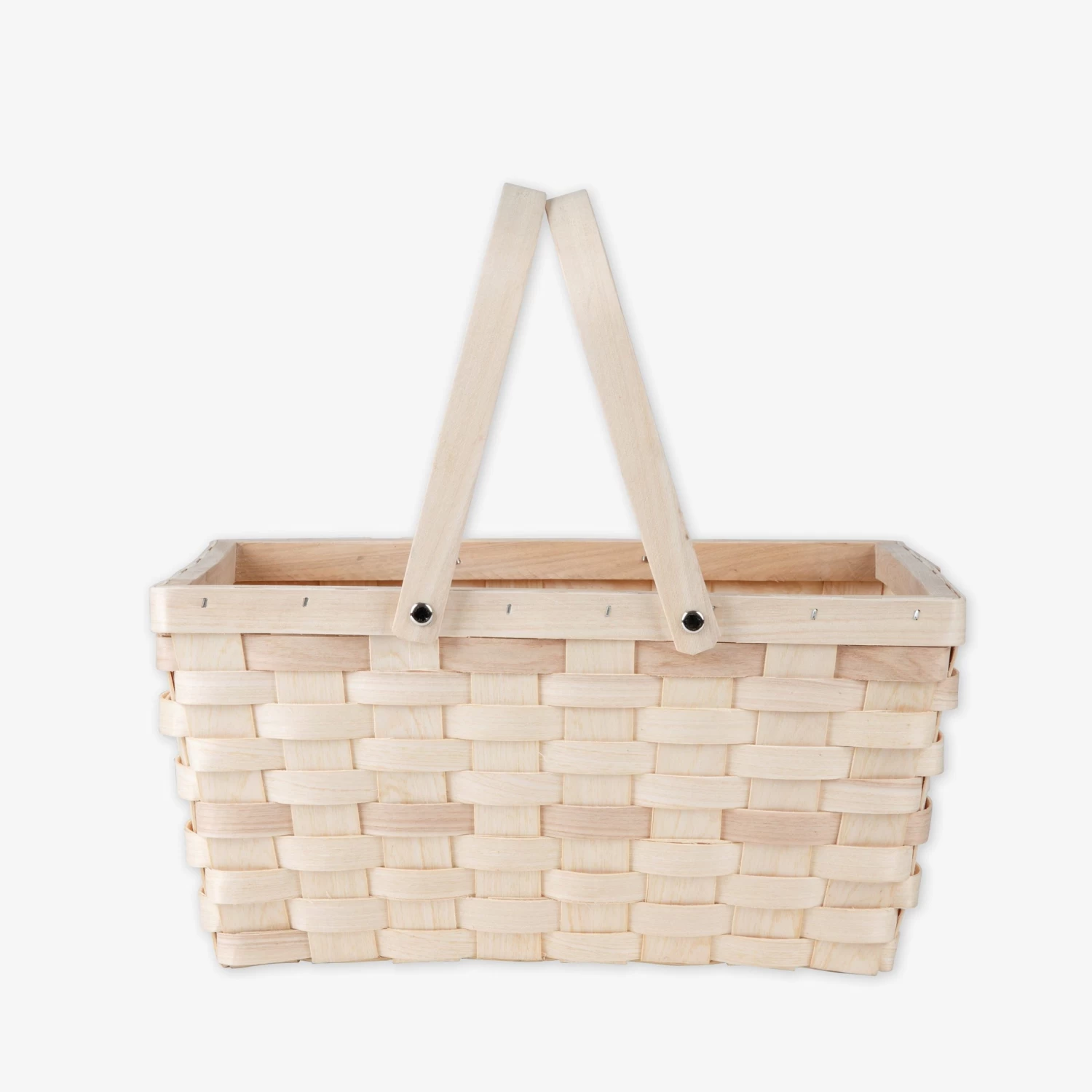 En simplistisk och estetiskt flätad korg tillverkad av ljust kinesiskt barrträd. Korgen passar till förvaring av smått och gott och har två stadiga bärhandtag i trä. Obehandlat trä.