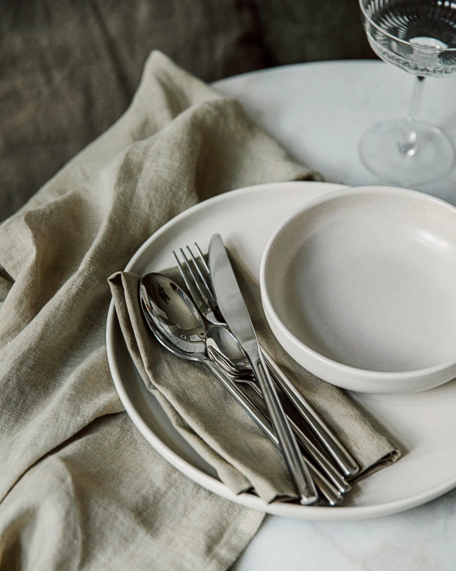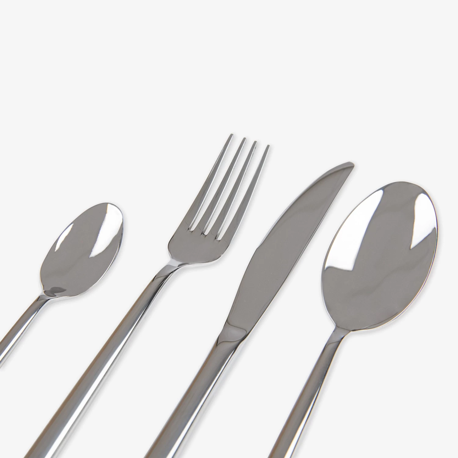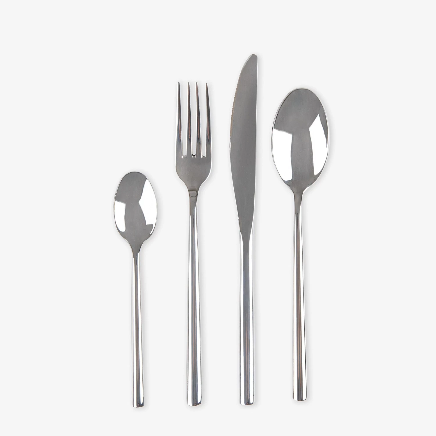 Stilvolles vierteiliges Besteckset aus Edelstahl. Spülmaschinenfest.