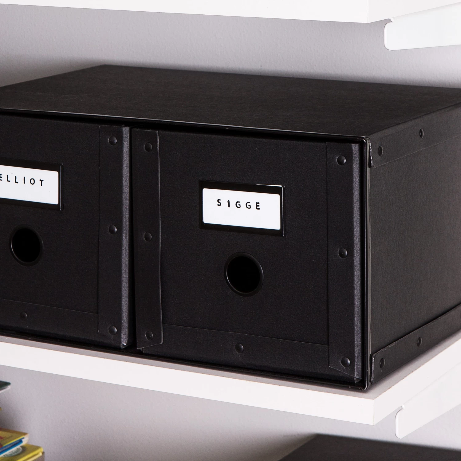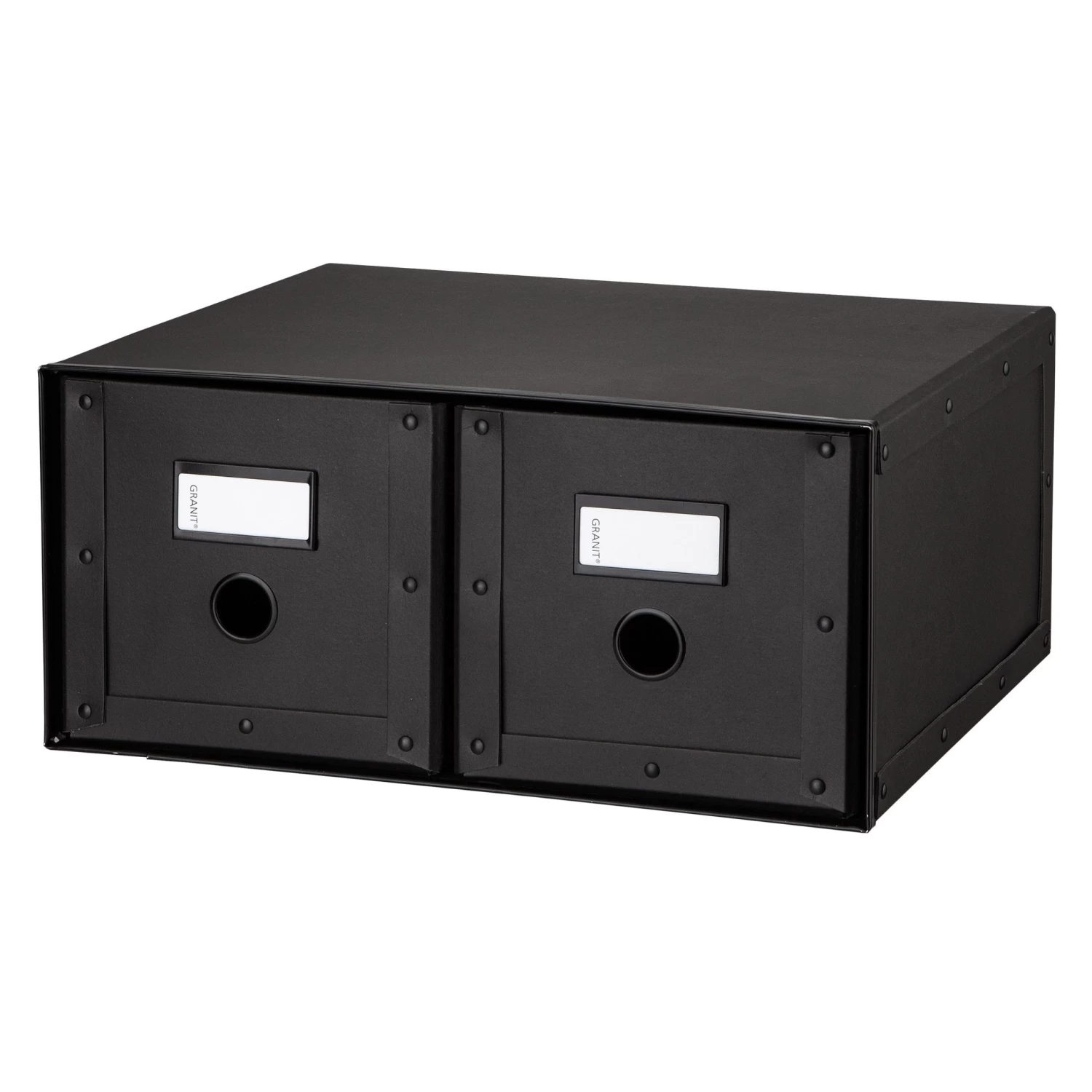 Die Box Doppelt Graphit wurde in Europa aus recyceltem Karton hergestellt und für erhöhte Stabilität per Hand genietet. Die clevere Box hat zwei praktische Schubfächer, die sich leicht herausziehen lassen, und zwei Beschriftungsfelder. Macht sich super im Regel und lässt sich hervorragend stapeln.