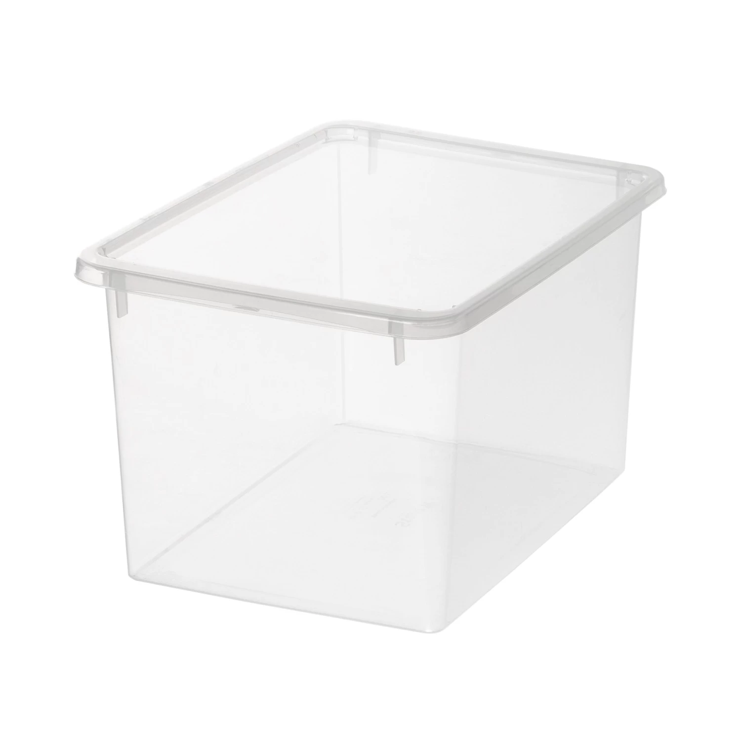 Organisiere mit stapelbaren Aufbewahrungsboxen aus recycelbarem Plastik! Die praktischen Boxen mit Deckel sind durchsichtig, sodass du den Inhalt leicht erkennst, aber du kannst sie auch mit schönen Etiketten oder Dymo beschriften. Die Boxen sind in mehreren verschiedenen Größen erhältlich.