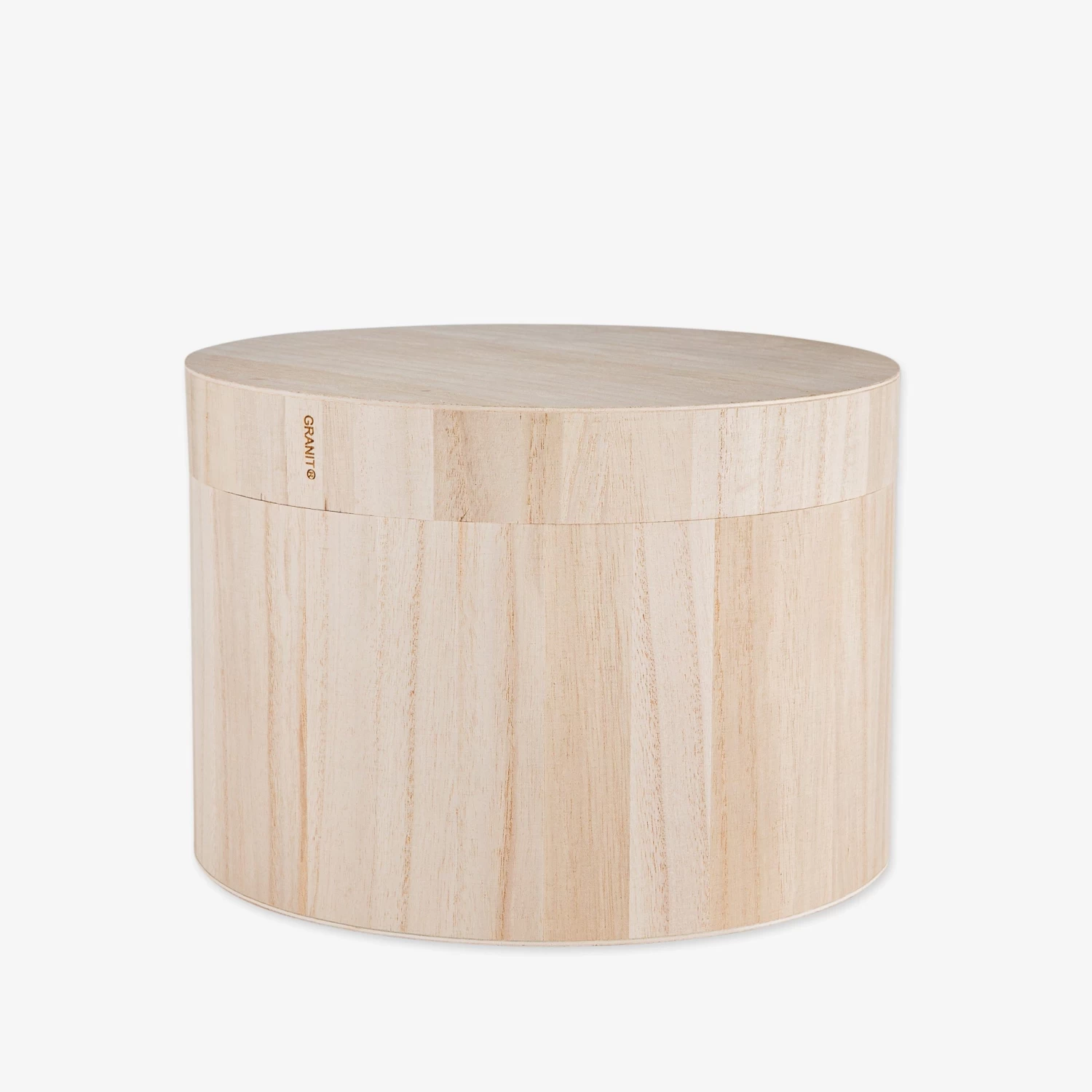 Stilvolle runde Box aus unbehandeltem hellem Holz, die sich für alle Arten von Aufbewahrung eignet und auch eine schöne Dekoration ist. Die Box ist in zwei Größen erhältlich. Höhe 19 cm, Ø 27 cm.