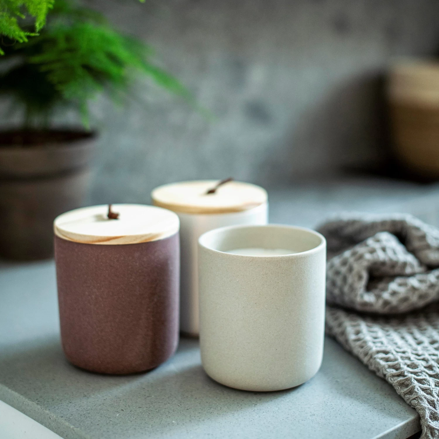 Eine Duftkerze auf Sojawachsbasis mit dem herrlich frischen Duft Pink Grapefruit. Der Diffusor ist ein Keramikbehälter mit einem Holzdeckel aus FSC-zertifiziertem Holz.