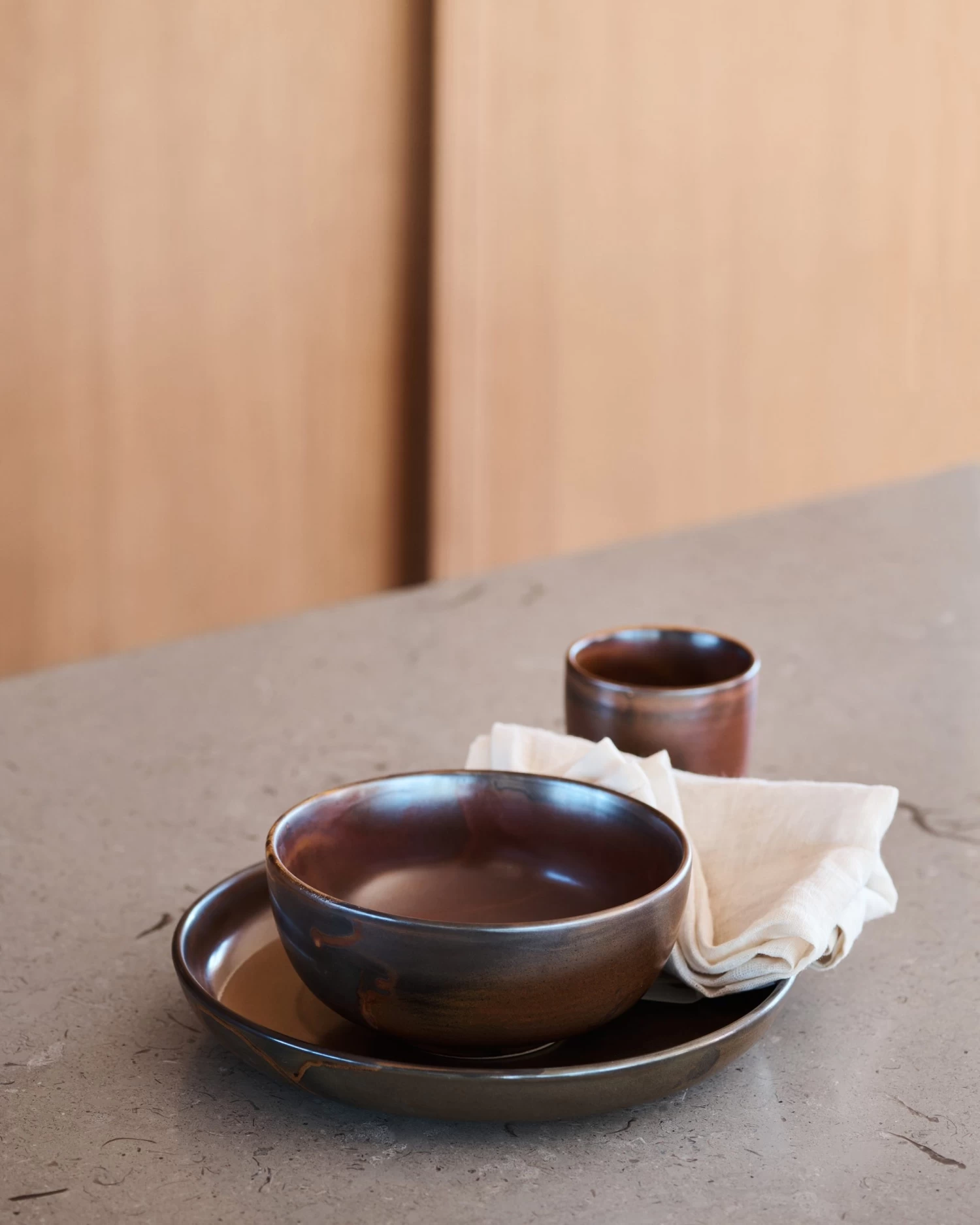 Eleganter, brauner Essteller, der sich sowohl für das tägliche Abendessen unter der Woche als auch für Dinnerpartys mit Freunden eignet.