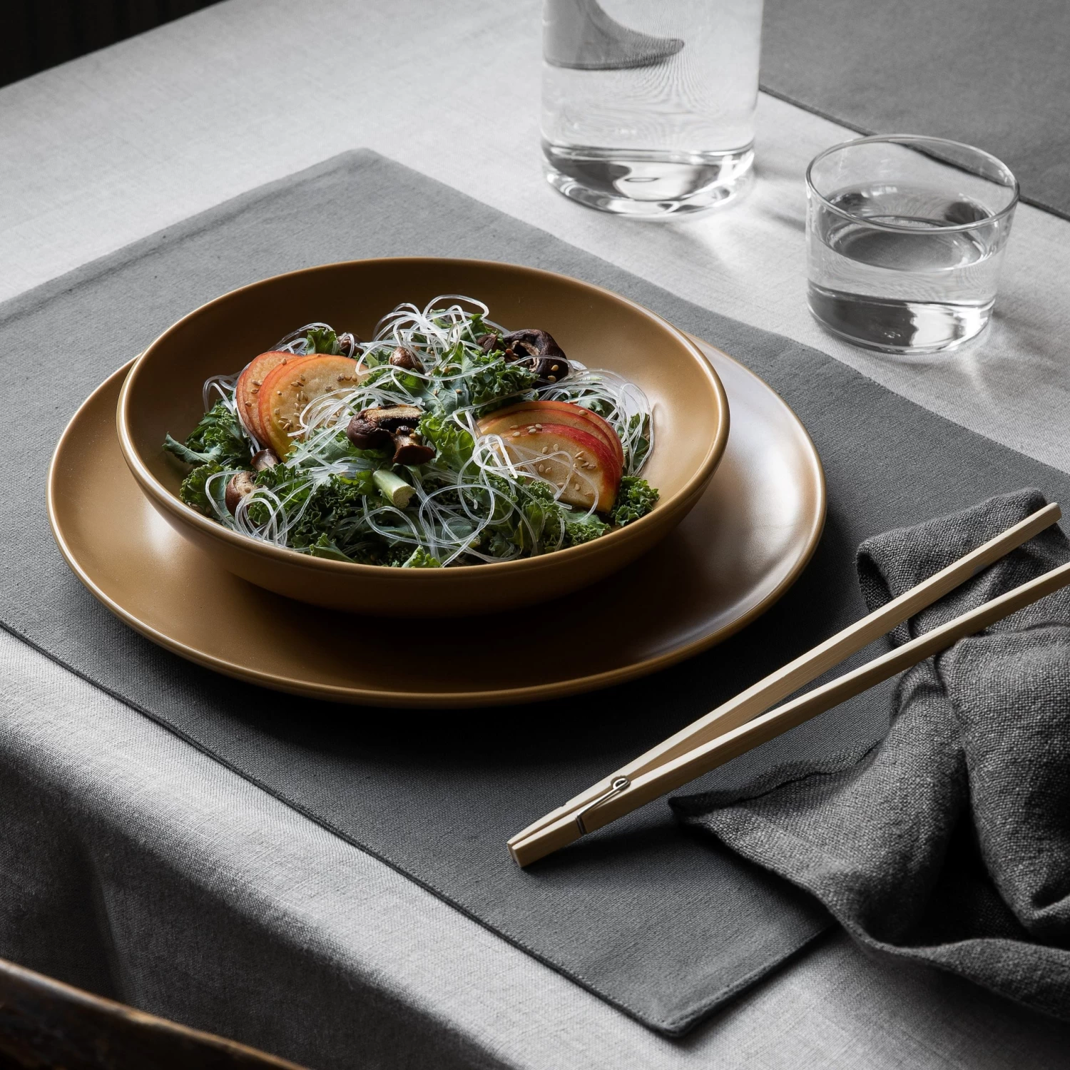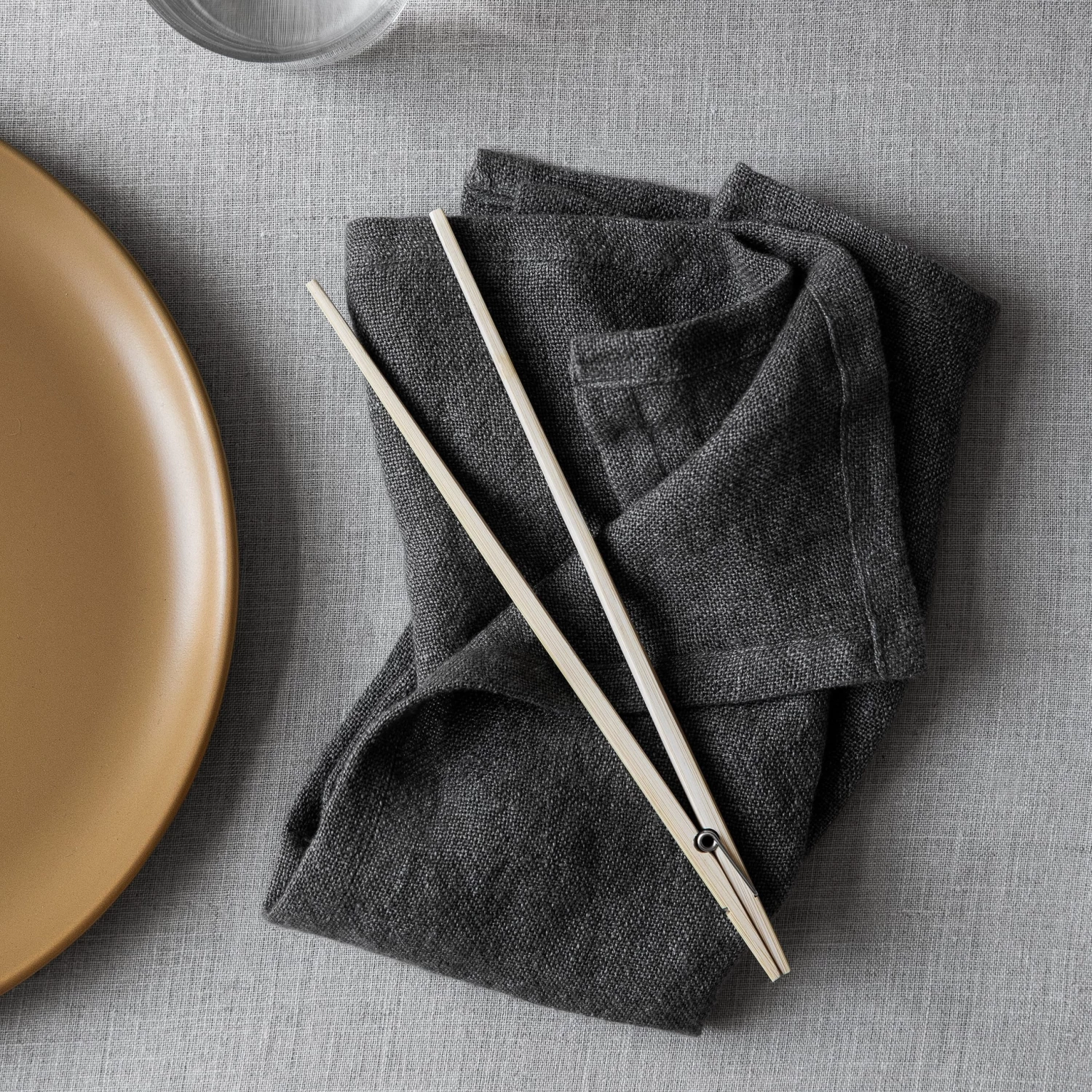 Stylishe Essstäbchen aus unbehandeltem Bambus. Die Stäbchen werden am einen Ende mit einem Scharnier zusammengehalten, wodurch sie supereinfach zu verwenden sind.