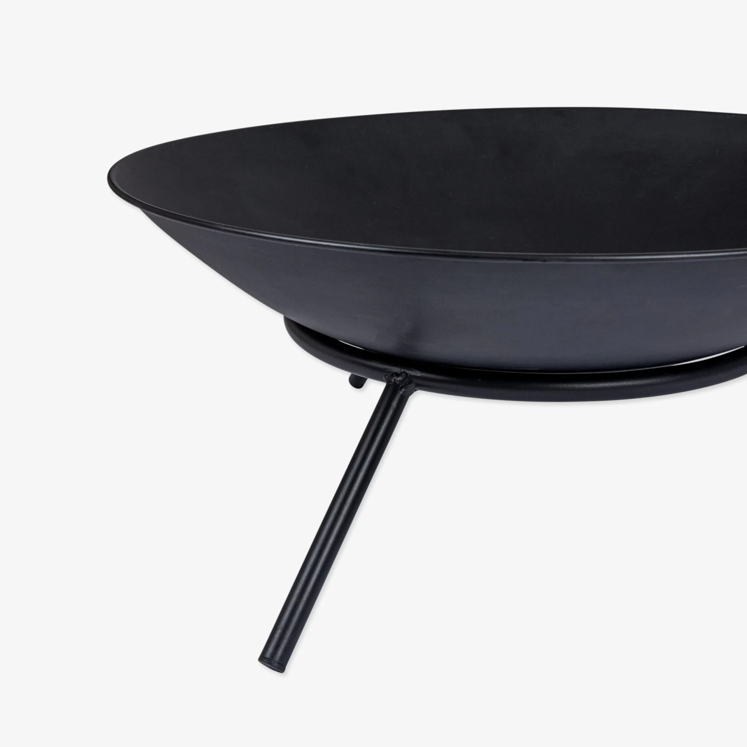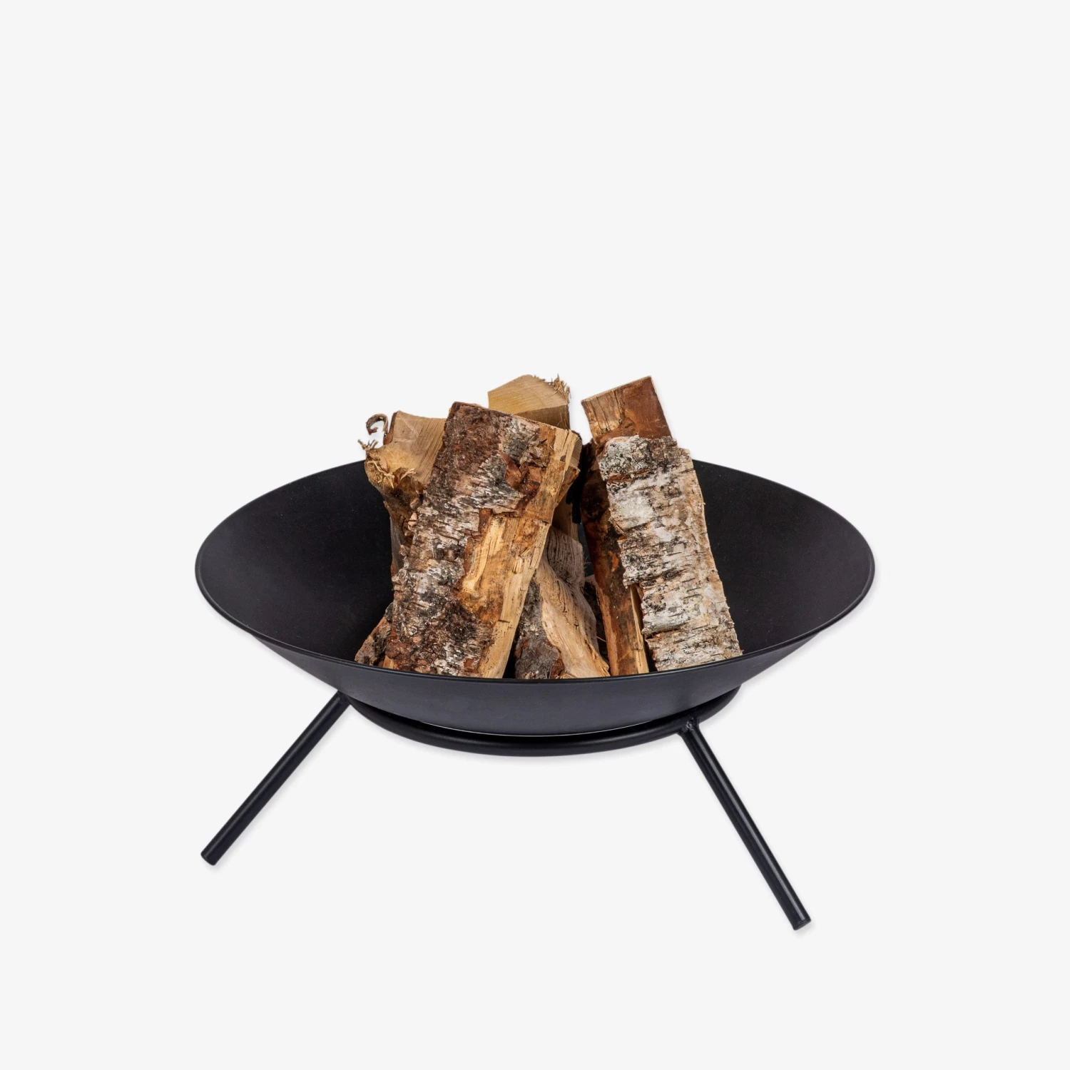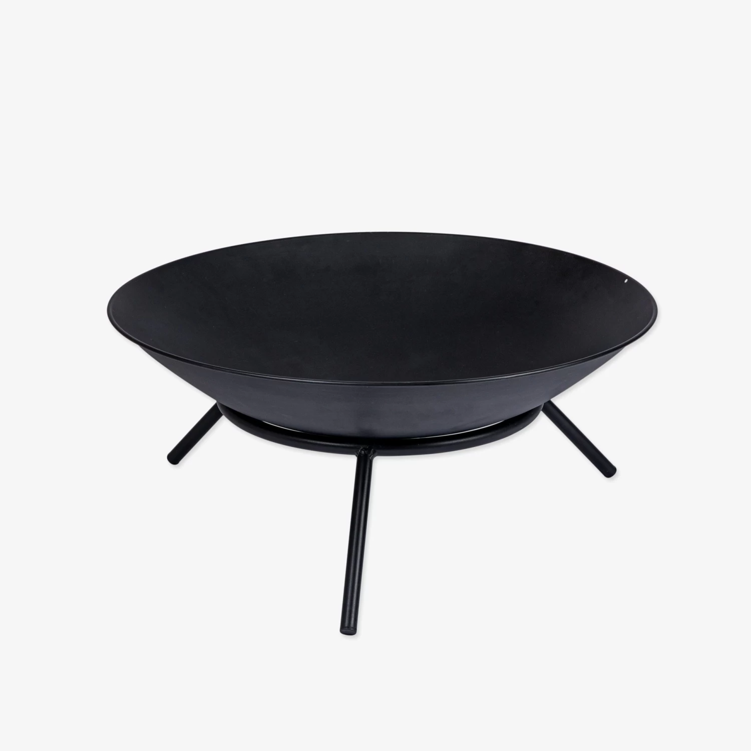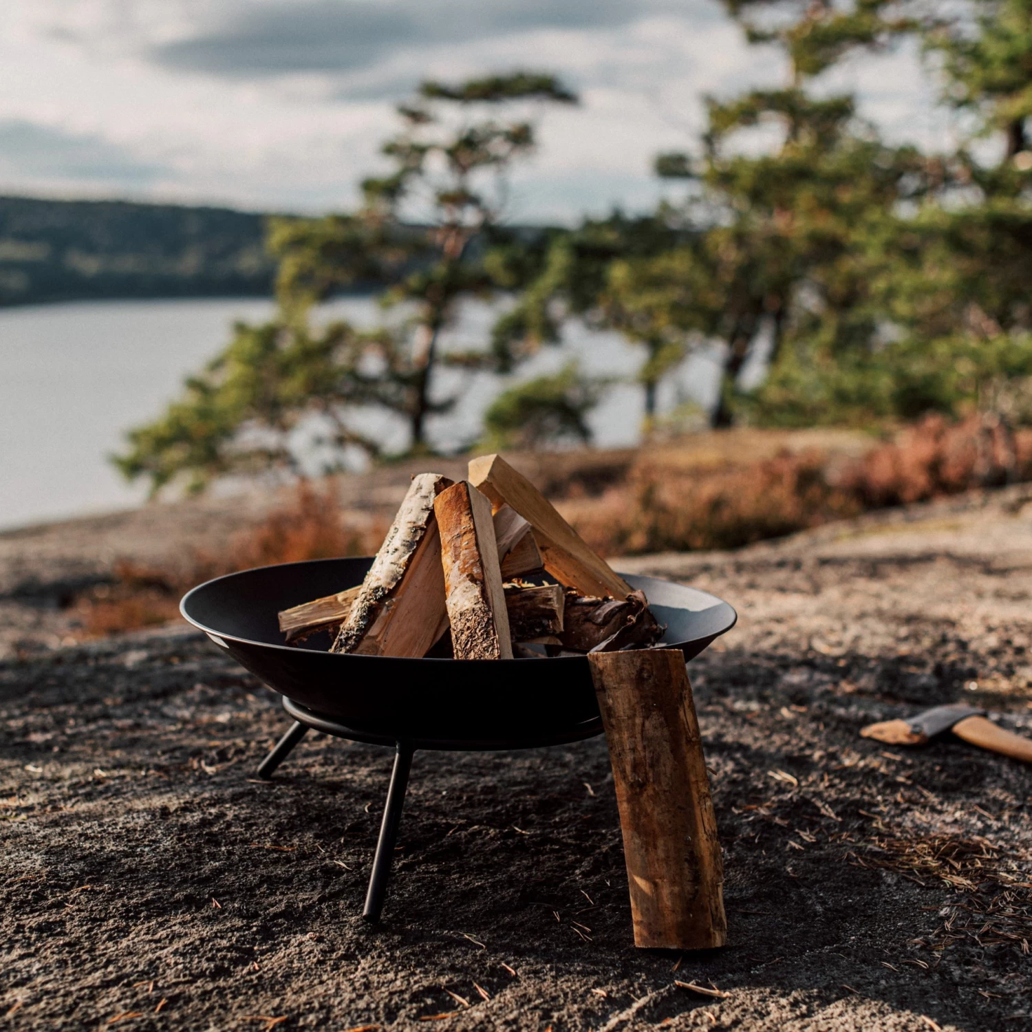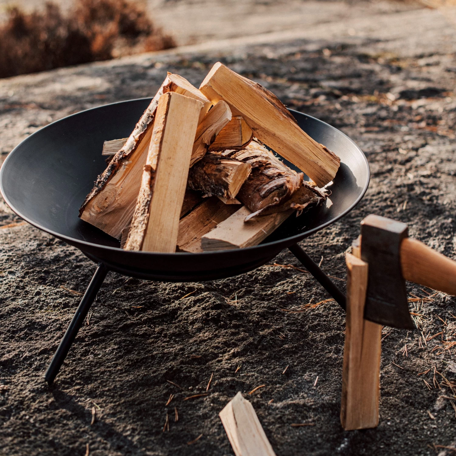 Feuerschale für die Verwendung im Freien. Die Feuerschale aus schwarzem Metall steht fest auf drei Beinen und schafft eine stimmungsvolle Atmosphäre, egal ob du sie im Garten oder draußen in der Natur verwendest. Maße: 56 cm Durchmesser, Höhe 25 cm.