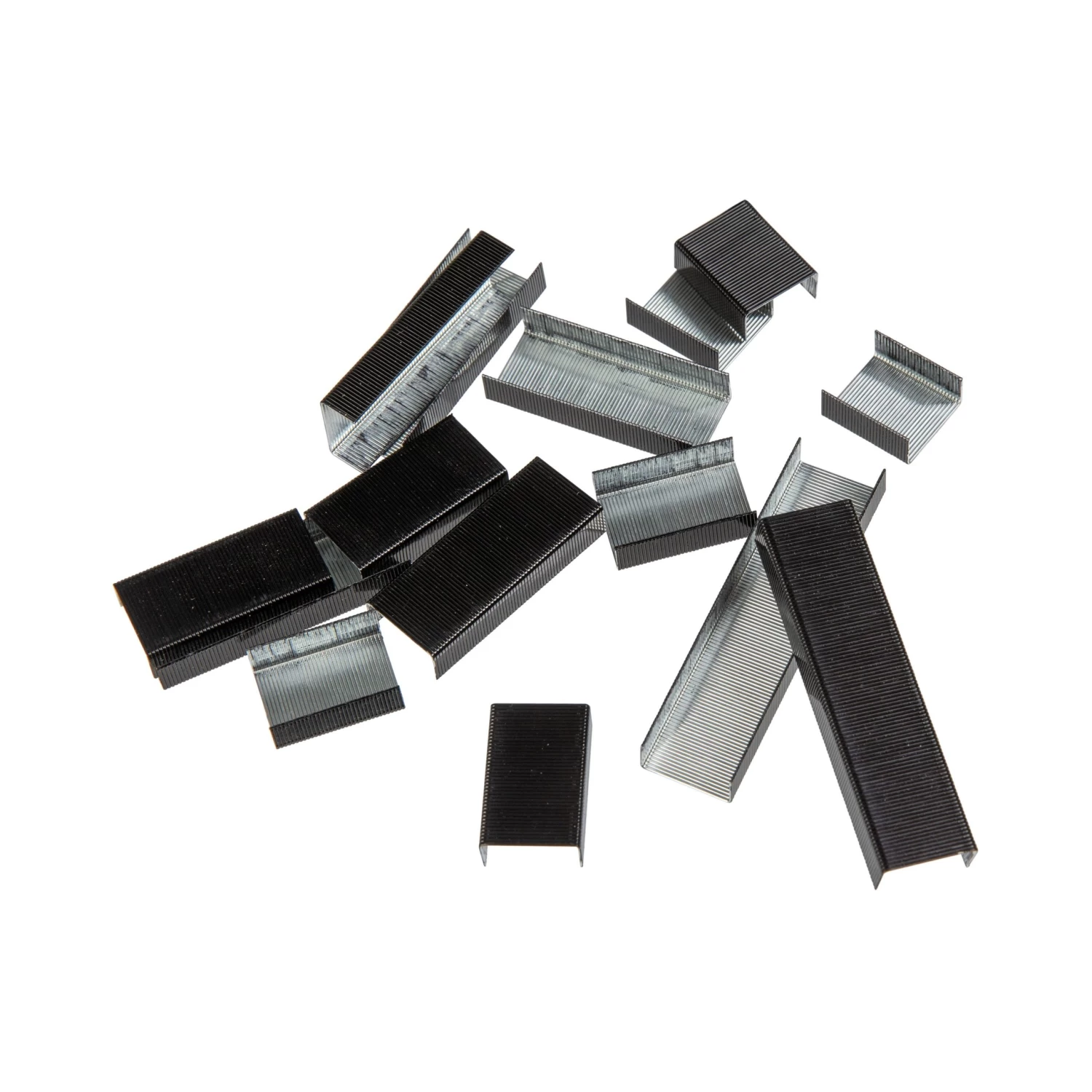 Schwarze Heftklammern in der Größe 26/6. 1000 Stück pro Packung Material: verzinkter Stahl.
