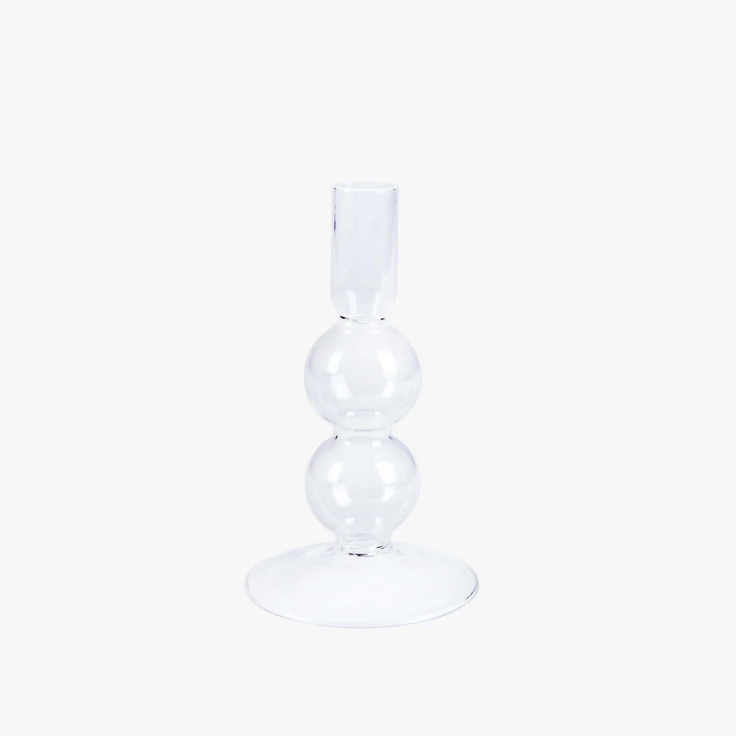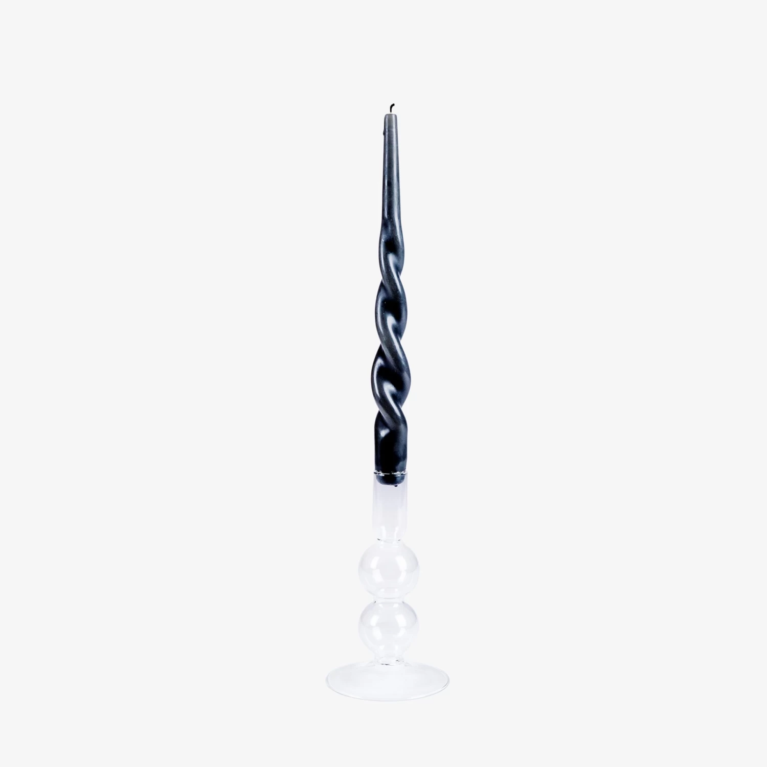 Schöner und stilvoller Kerzenständer in seiner ganzen Schlichtheit. Geeignet für Kronleuchterkerzen. Der Kerzenhalter ist aus klarem Glas gefertigt und sieht zusammen mit seinen beiden Freunden aus der gleichen Serie großartig aus. Höhe 16 cm, Durchmesser 9,5 cm.