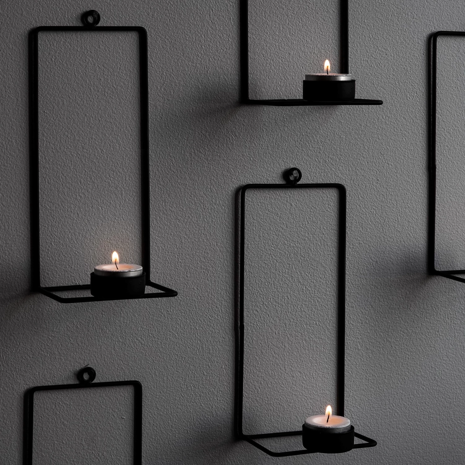 Schwarzer Kerzenständer aus Metall, der an die Wand gehangen werden kann. Perfekt für ein Teelicht.