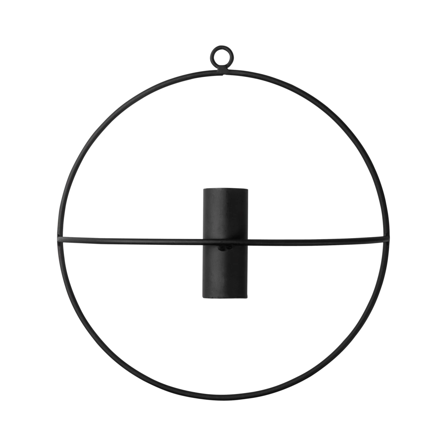 Schwarzer Kerzenständer aus Metall, der an die Wand gehangen werden kann. Perfekt für eine Tafelkerze.