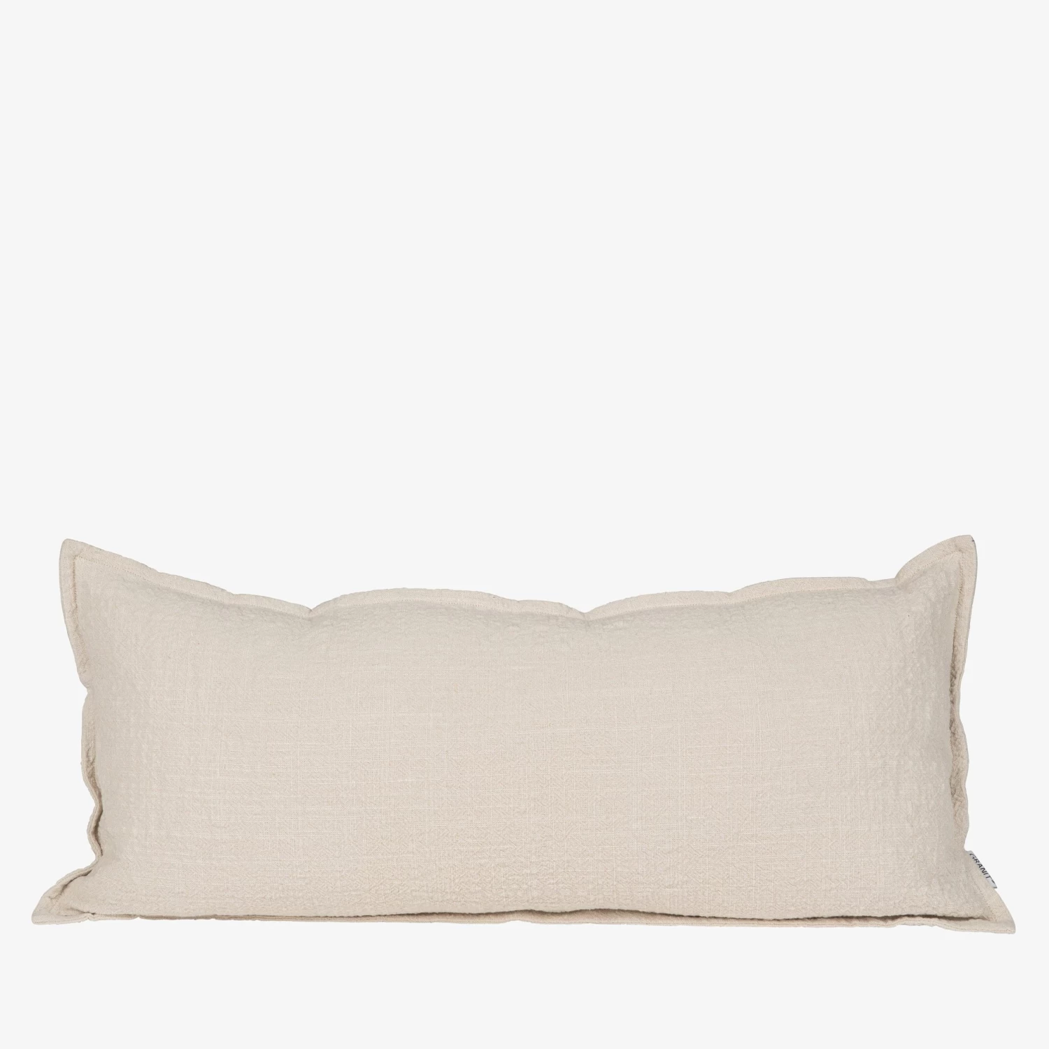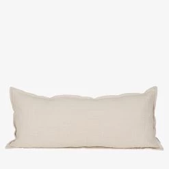 Schickes, längliches Kissen in einem sandfarbenen Ton aus Leinenmix mit abnehmbarem Bezug, der bei Verschmutzung einfach gewaschen werden kann. Der Kissenbezug ist nach OEKO-TEX® STANDARD 100 zertifiziert und passt gut zum Bett im Schlafzimmer oder auf das Sofa oder den Sessel im Wohnzimmer.