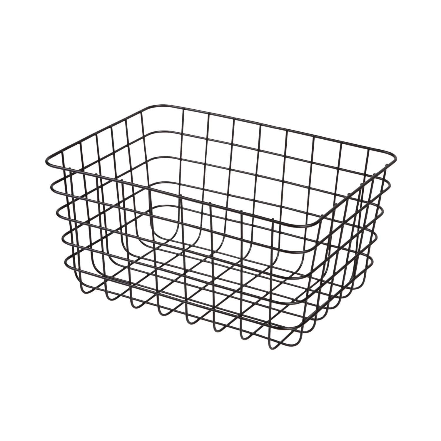 Schwarzer Metallkorb in zeitlosem Design, ideal für die Aufbewahrung von Accessoires oder Zeitschriften. Passt auch wunderbar ins Bücherregal. Höhe 16 cm. Erhältlich in zwei verschiedenen Größen.