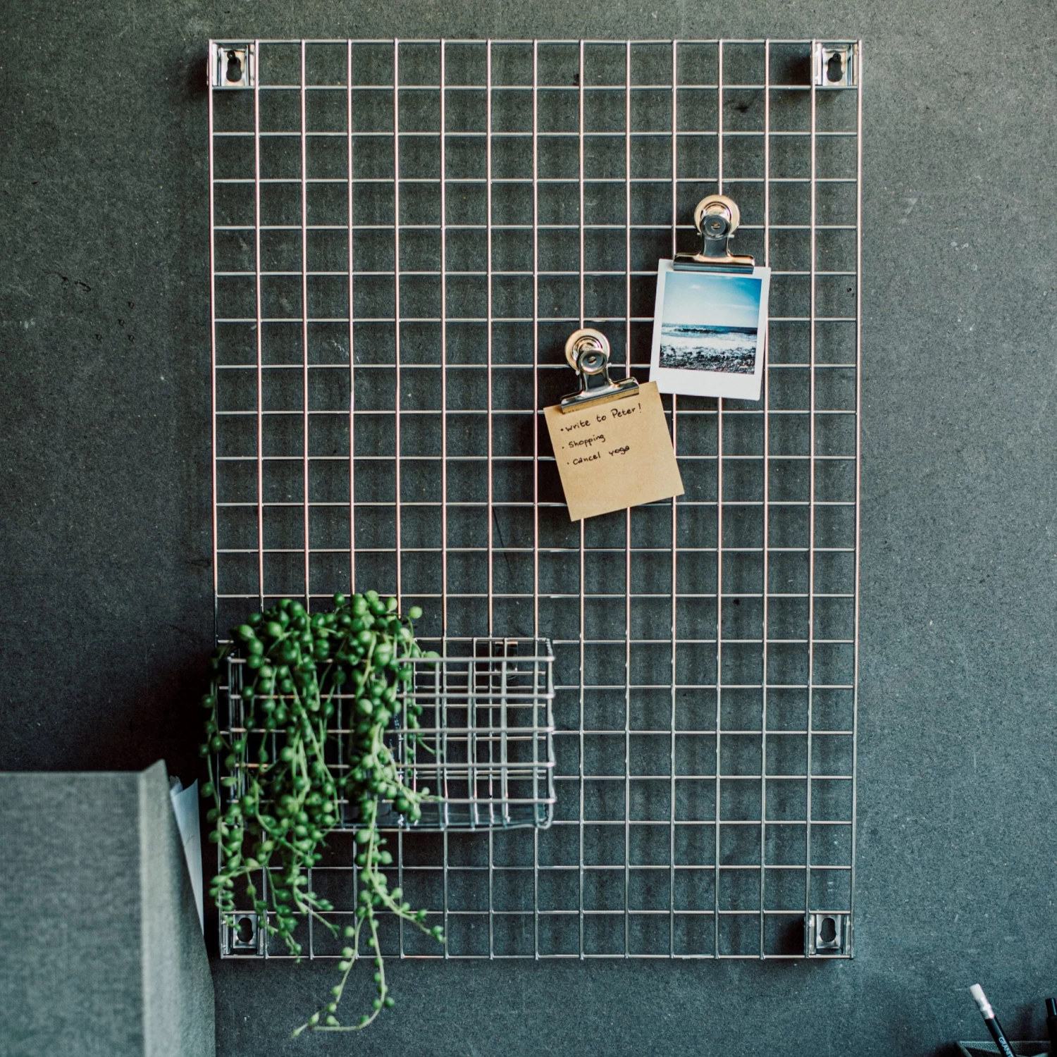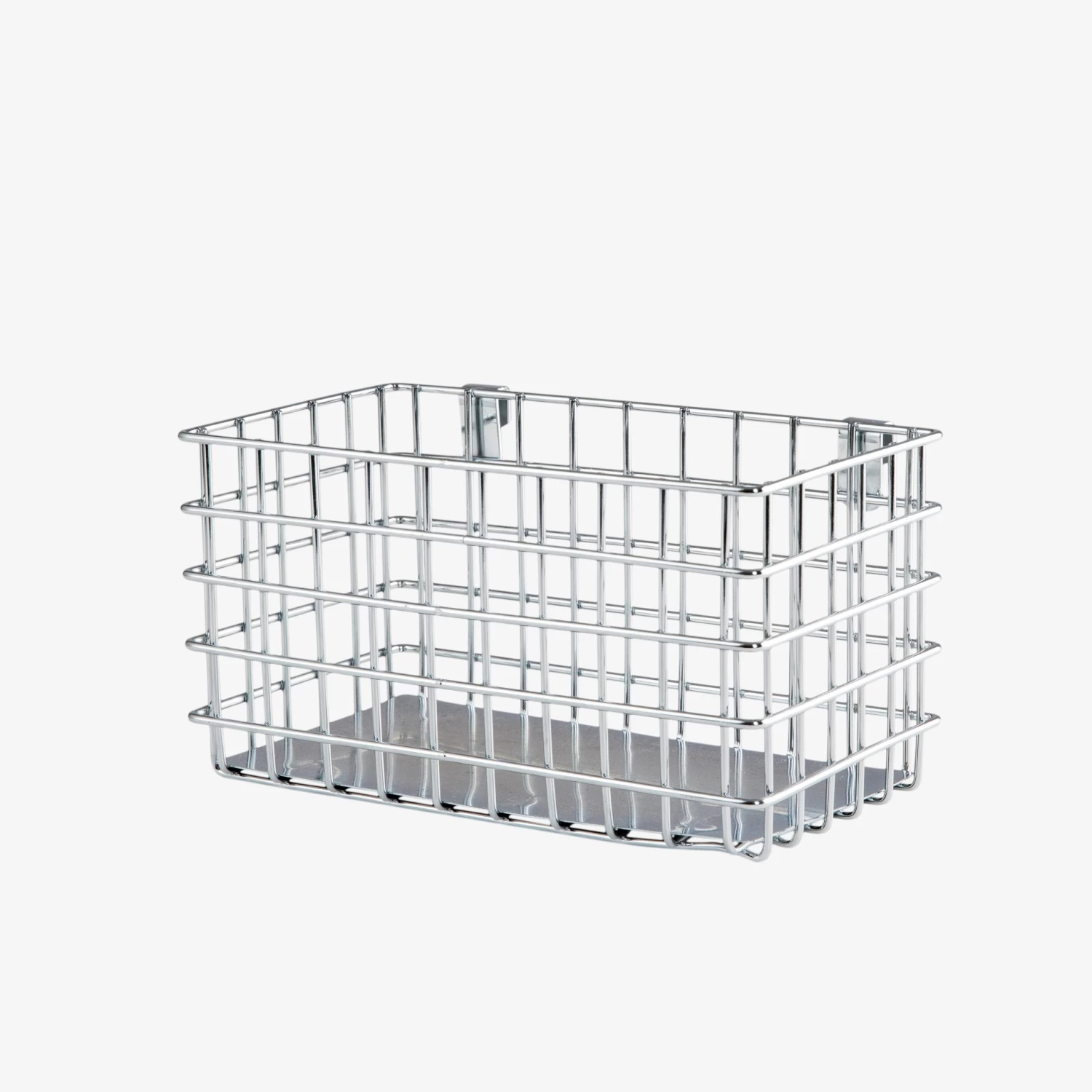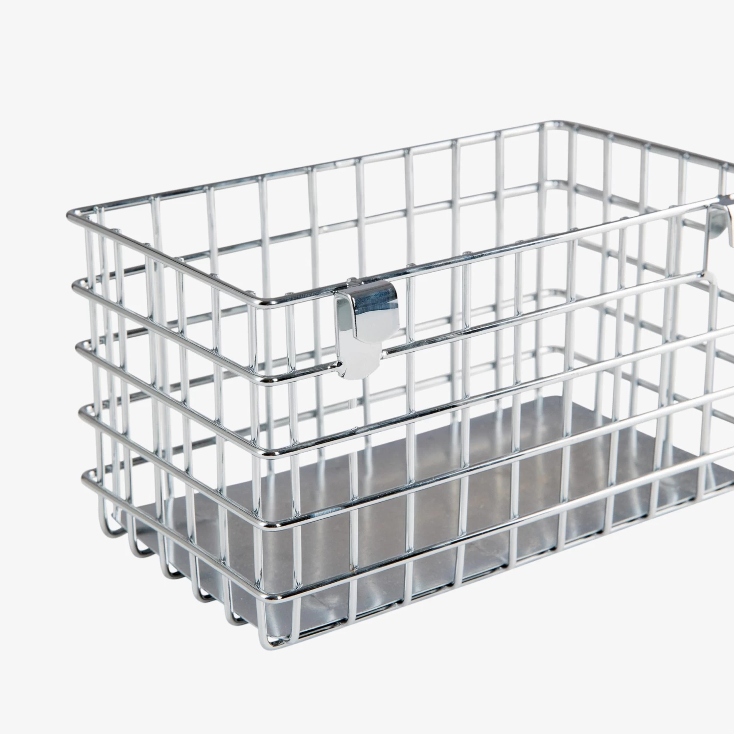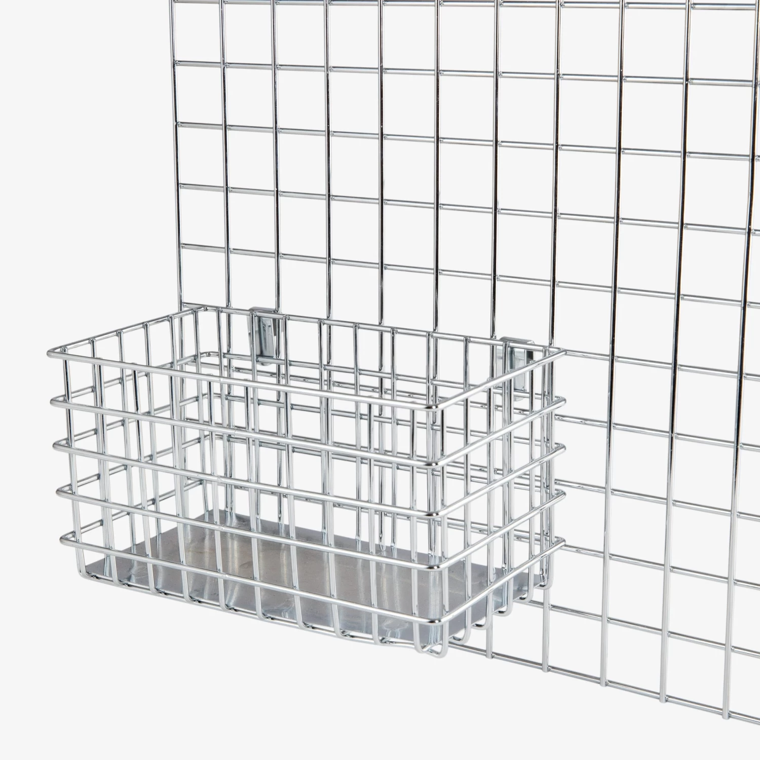 Ordnung und Sauberkeit! Verchromter Korb mit Haken an der Längsseite zum einfachen Aufhängen an unseren beliebten Gittertafeln.