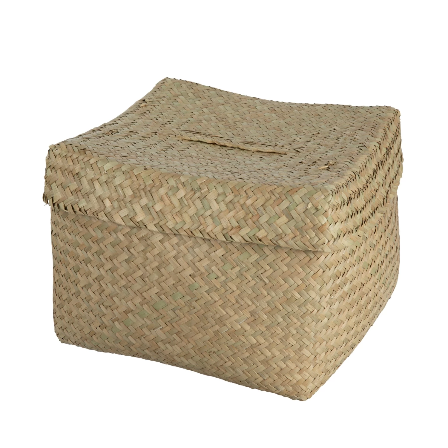 Rechteckiger Korb aus Seegras mit passendem Deckel. Der Deckel hat einen Griff an der Oberseite. Auch in zwei kleineren Größen erhältlich!