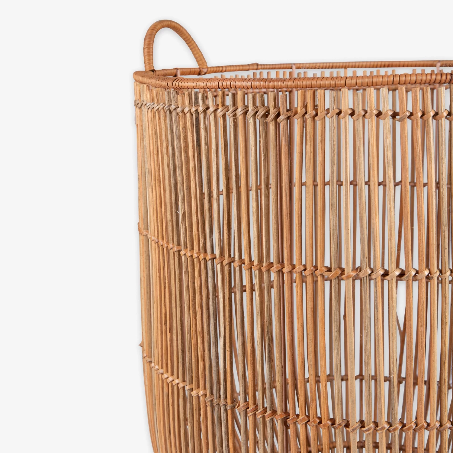 Ein stilvoller Rattankorb, der in drei Größen erhältlich ist. Er macht sich alleine gut, sieht aber auch als Set toll aus. Die Konstruktion ist mit einem inneren Metalldraht verstärkt, damit der Korb stabil bleibt und seine Form behält. Verwende ihn als Aufbewahrungskorb oder als dekoratives Element.Maße: H 40 cm Ø 45 cm.