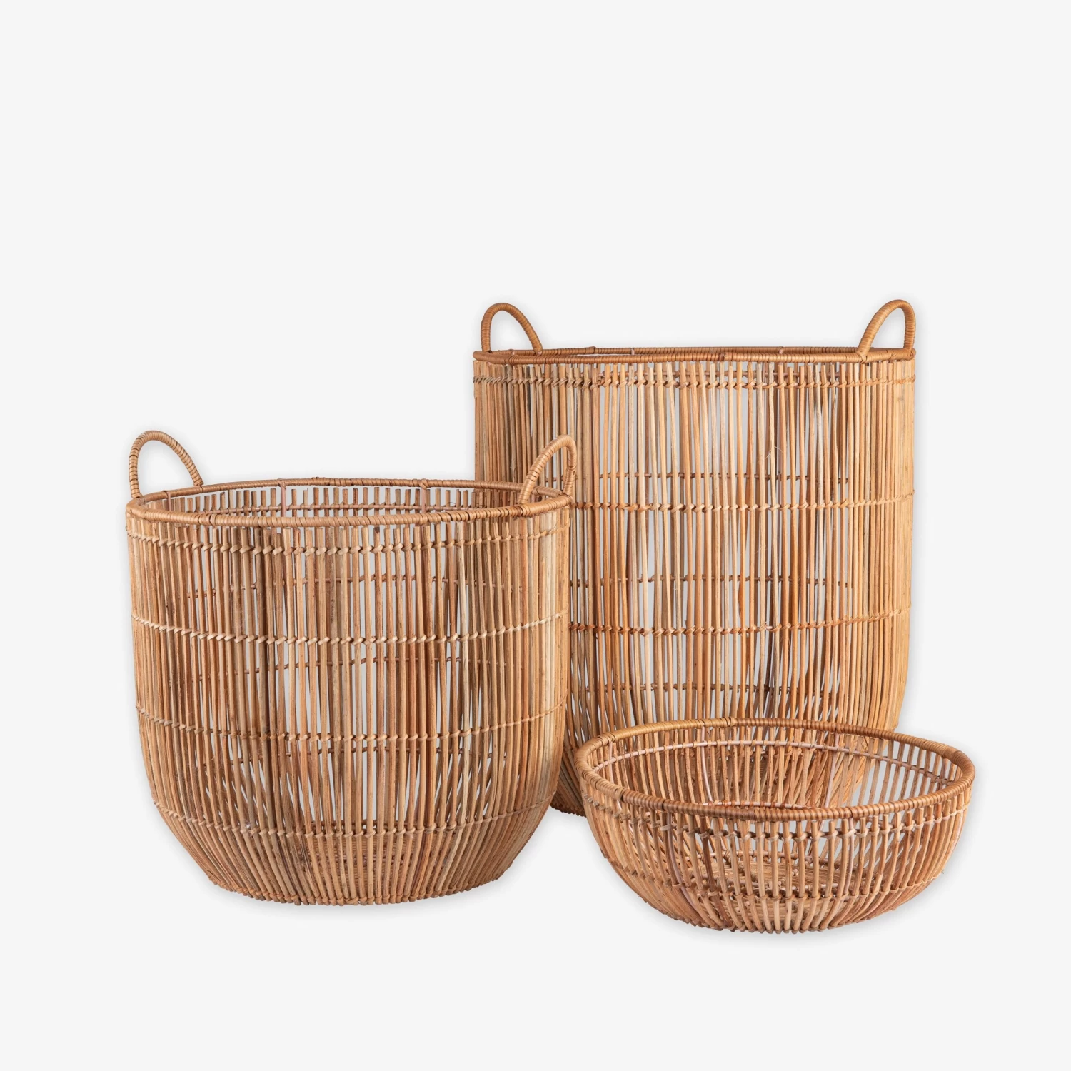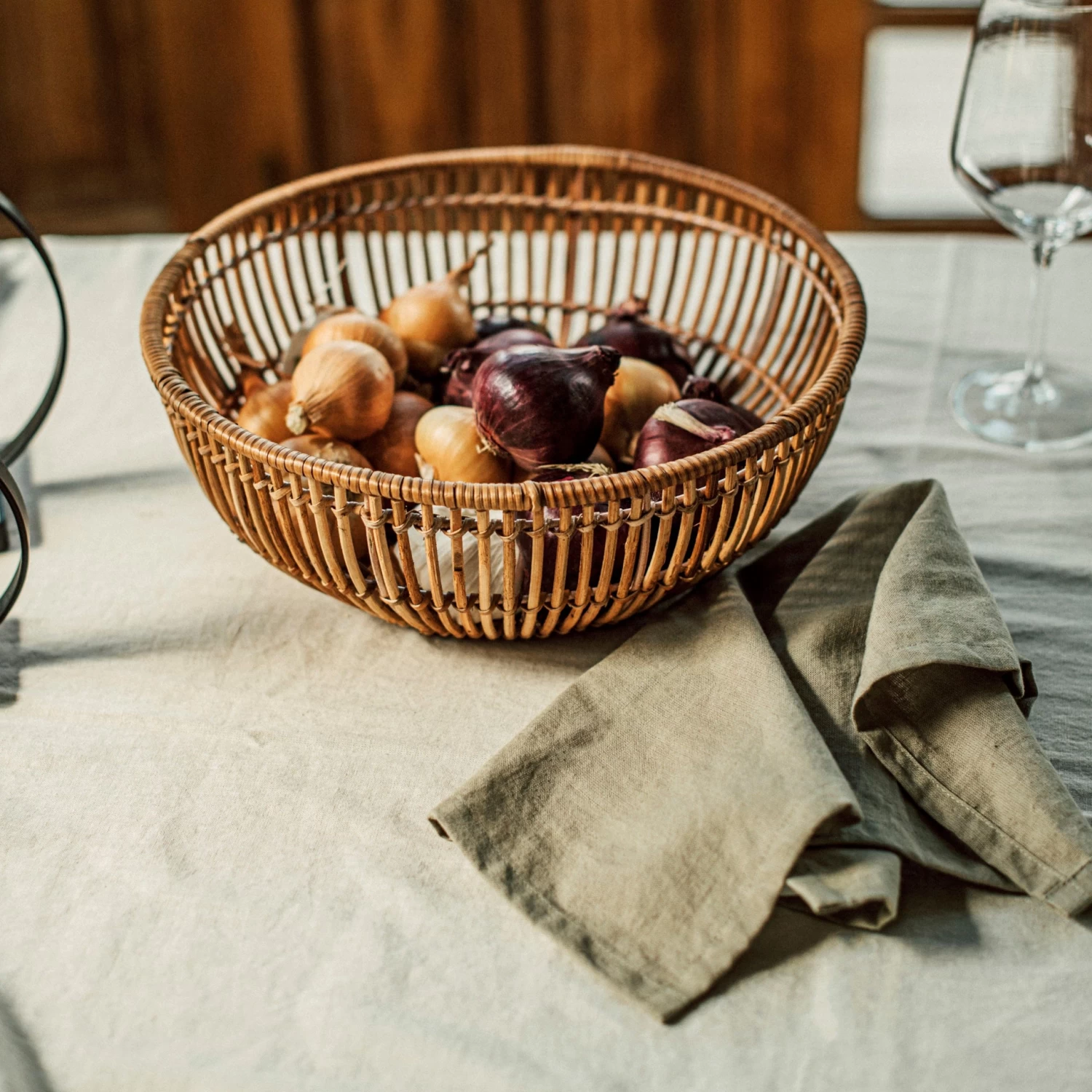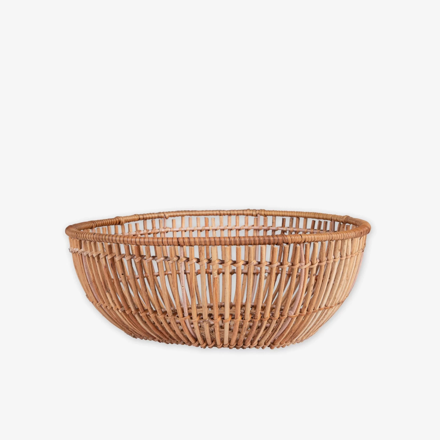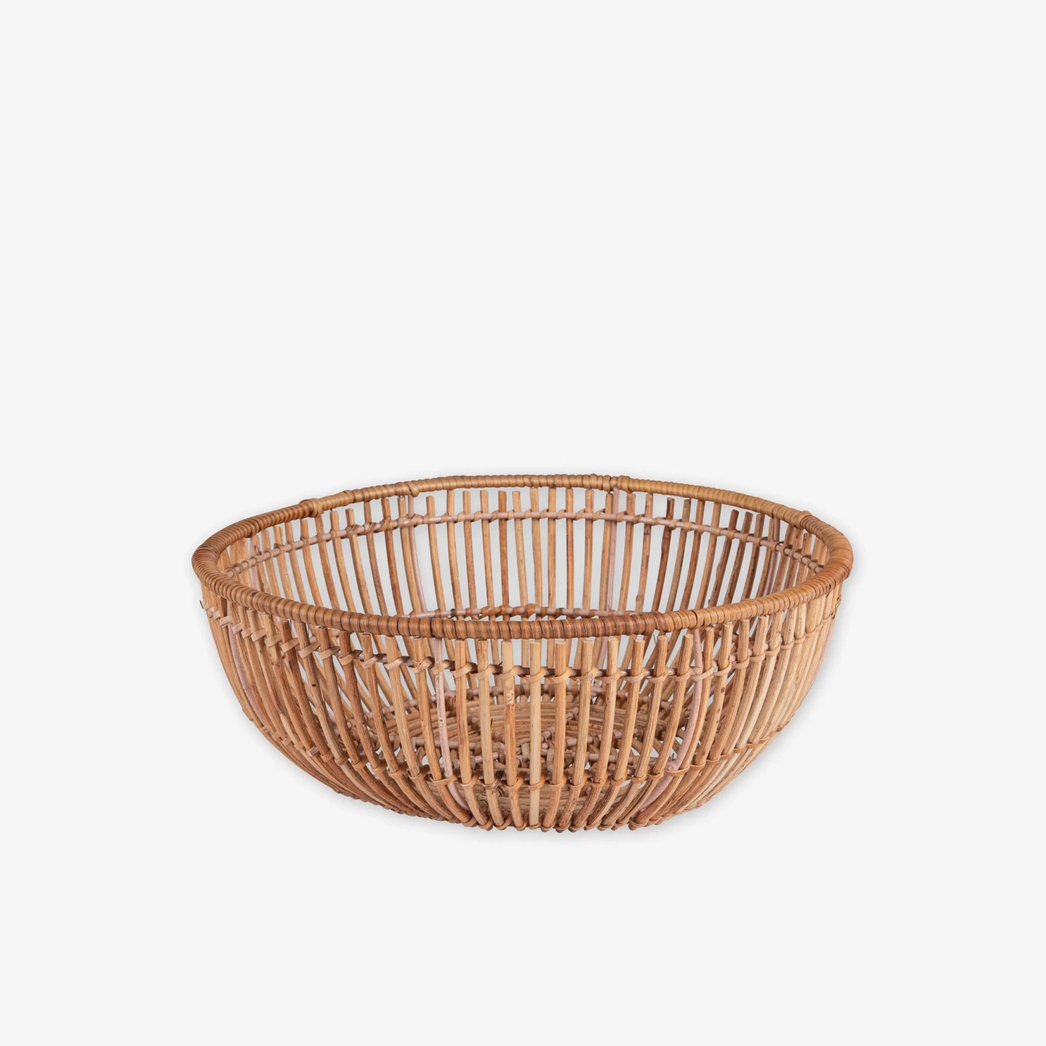 Ein stilvoller und dekorativer Rattankorb, der in drei Größen erhältlich ist. Er macht sich alleine gut, sieht aber auch als Set toll aus. Die Konstruktion ist mit einem inneren Metalldraht verstärkt, damit der Korb stabil bleibt und seine Form behält. In der Küche für Obst oder im Flur für wichtige Kleinigkeiten.Maße: H 10 cm Ø 30 cm.
