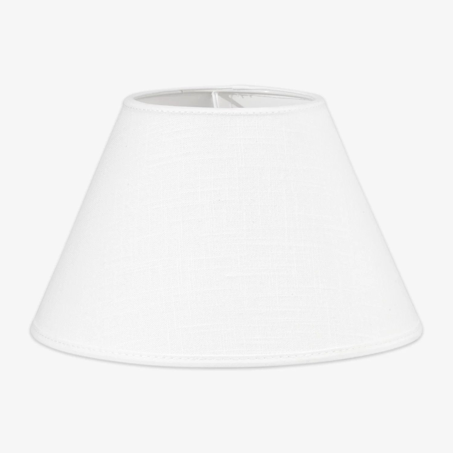 Spitz zulaufender weißer Lampenschirm aus 100% Baumwolle mit Ringbefestigung, passend für Lampen mit E27-Sockel. Passt gut zum Lampenfuß (401552) aus schwarzem Metall.