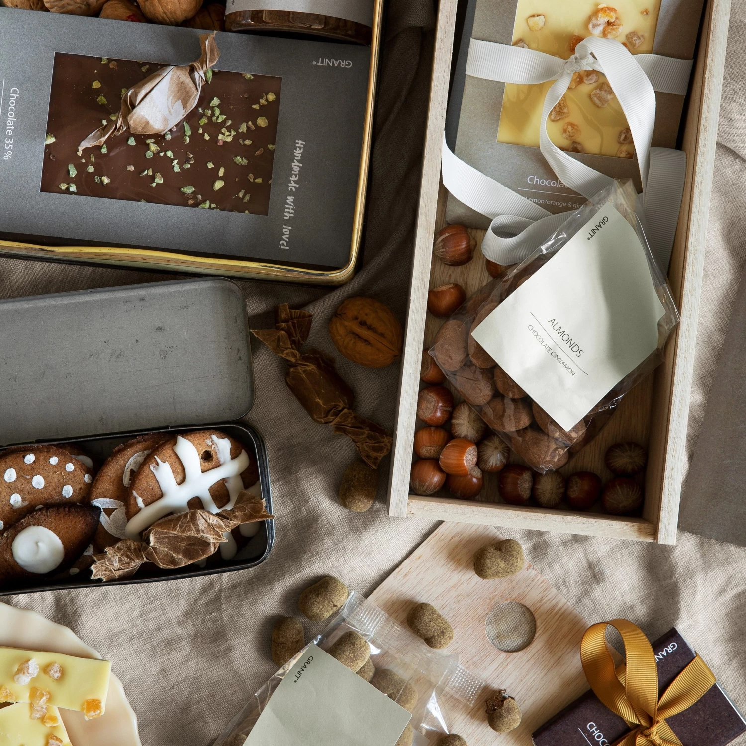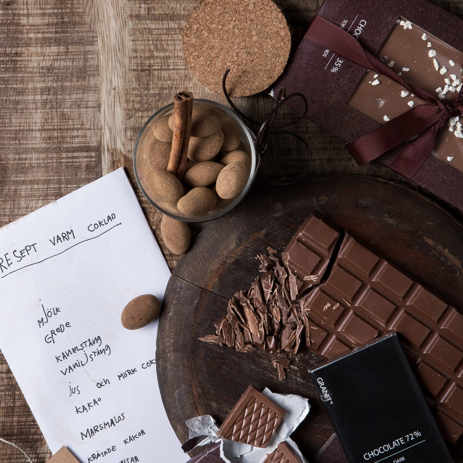| Content | Ingredienser: Socker, MANDEL (20 %), kakaosmör, HELMJÖLKSPULVER, kakaomassa, emulgeringsmedel (SOJALECITIN), naturlig vanilj arom, kanel. Mjölkchokladen innehåller min 30 % kakaobeståndsdelar. Spår av HASSELNÖT, CASHEWNÖT, PARANÖT och PEKANNÖT kan förekomma. Näringsvärde per 100 g: Energi (kJ): 2315 Energi (kcal): 553 Fett: 35 g varav mättat fett: 16 g Kolhydrater: 48 g varav sockerarter: 47 g Protein: 9,1 g Salt: 0,10 g |