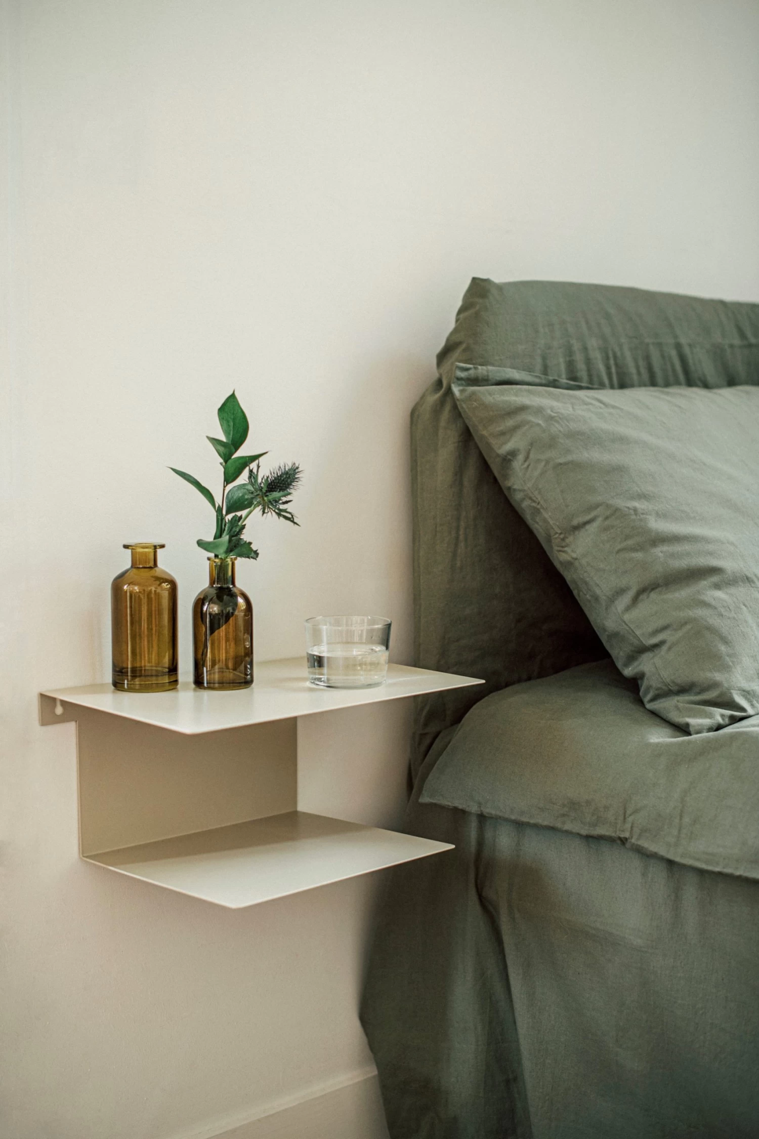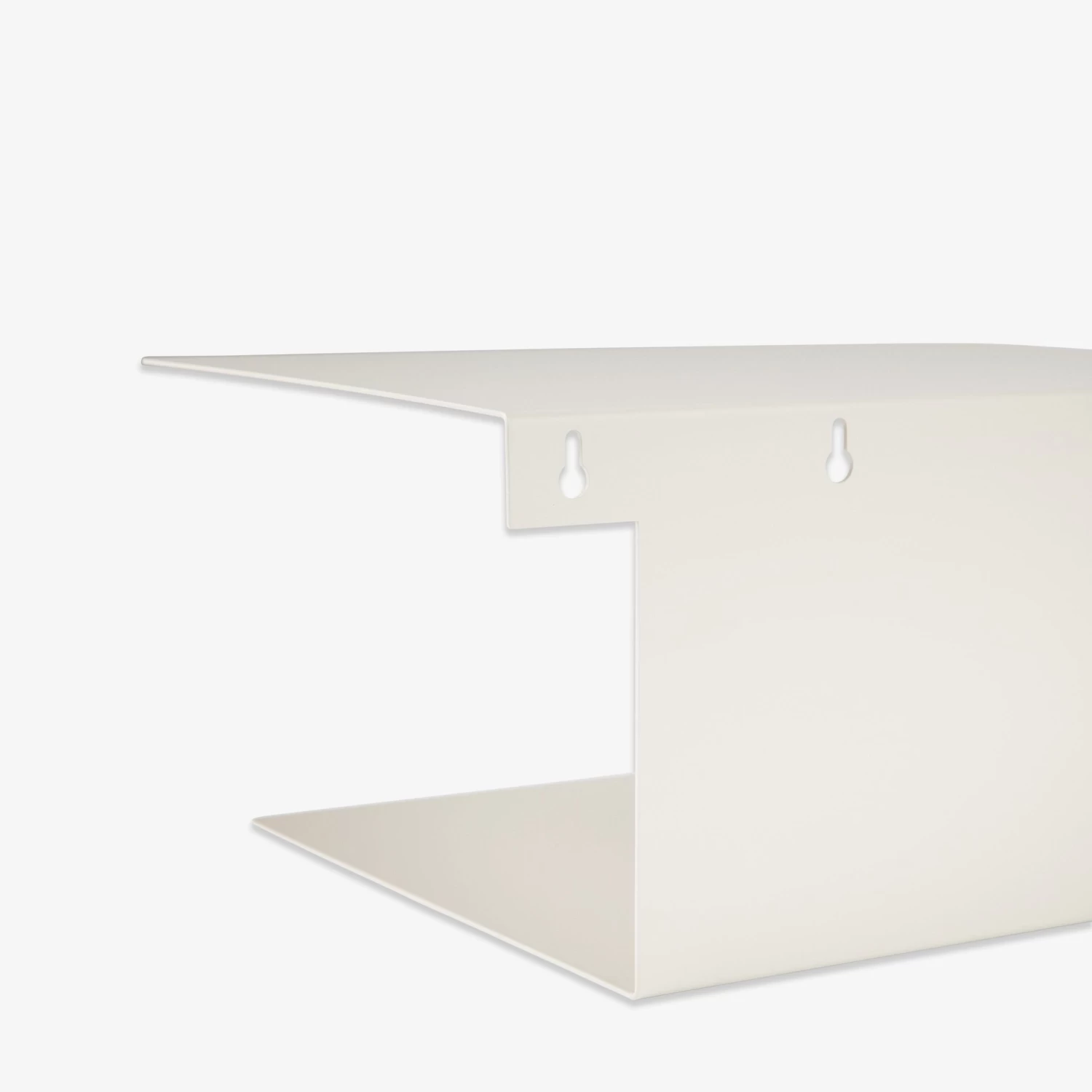 Stilvoller, an der Wand montierter Nachttisch, der an der Wand aufgehängt einen schwebenden Eindruck vermittelt. Aus lackiertem Metall mit viel Platz für deine Abendlektüre oder andere Dinge, die du in der Nähe haben möchtest. Der Tisch ist einfach an der Wand zu montieren und hat an der Rückseite zwei versteckte Schraublöcher zum Aufhängen. Da du die Aufhänghöhe wählen kannst, passt der Tisch zu allen Betten, unabhängig von der Höhe. Ebenso stilvoll im Flur oder im Wohnzimmer als Wandregal.