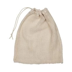Netztasche mit Kordelzug aus 100 % biologisch angebauter Baumwolle.Eignet sich gut für den Einkauf von Obst und Gemüse und kann immer wieder verwendet werden.