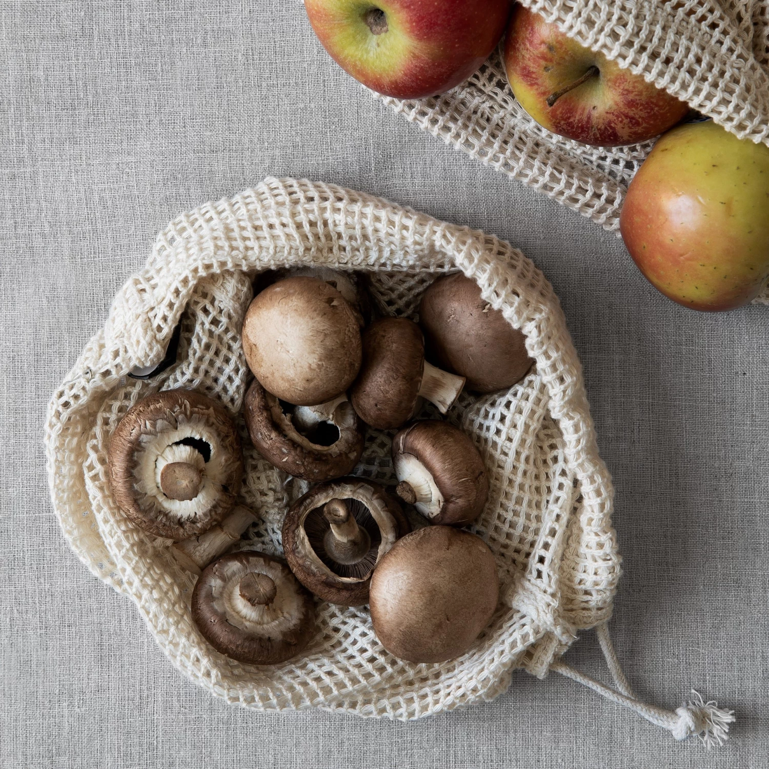 Netztasche mit Kordelzug aus 100 % Bio-Baumwolle.Eignet sich gut für den Einkauf von Obst und Gemüse und kann immer wieder verwendet werden.