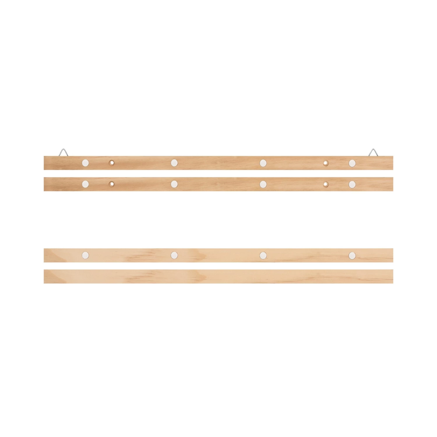 Clevere Bilderleiste in minimalistischem Look aus Kiefernholz. In der Leiste kannst du Poster bis zu einer Breite von 50 cm aufhängen. Kann mit den mitgelieferten Schrauben oder mit separaten Haken an der Wand angebracht werden. Sieht super zusammen mit unseren Jahresplanern.
