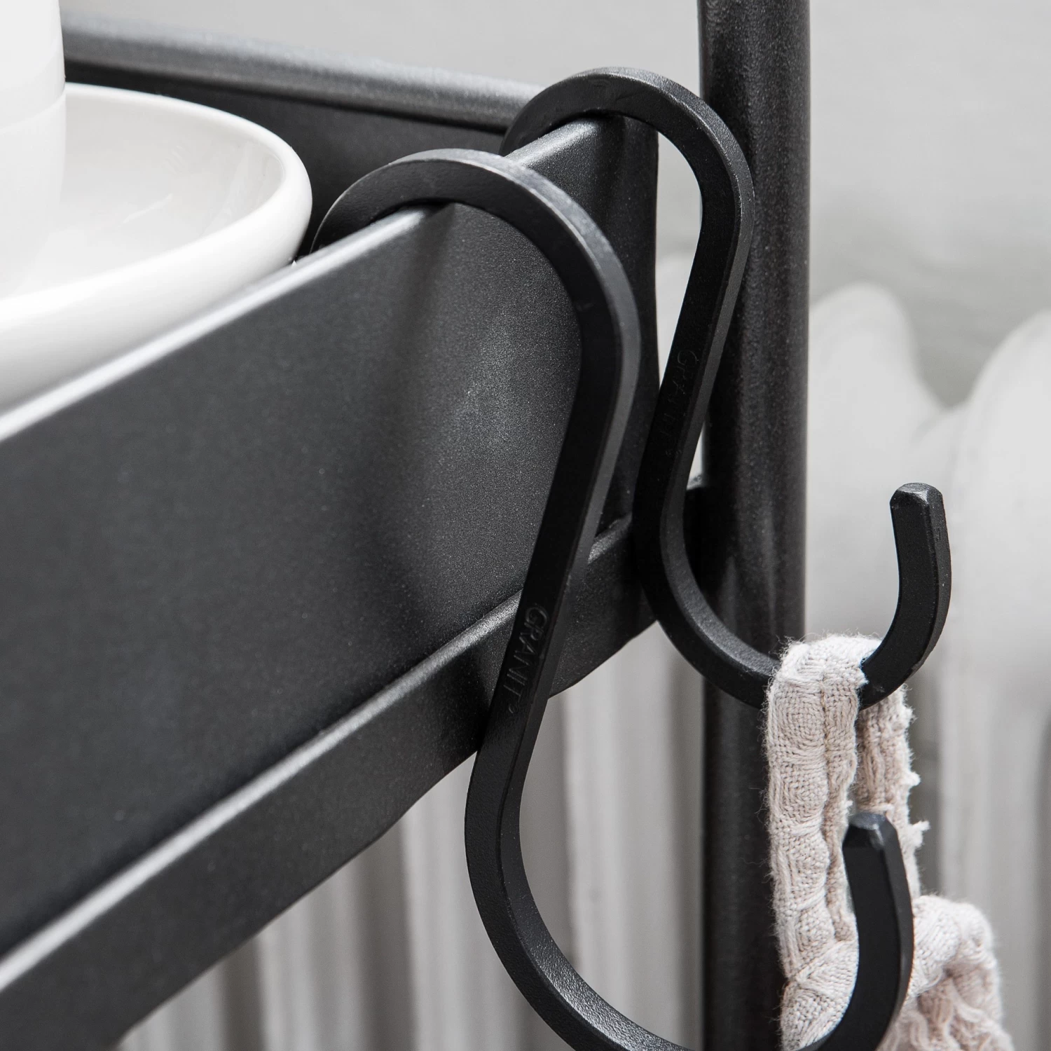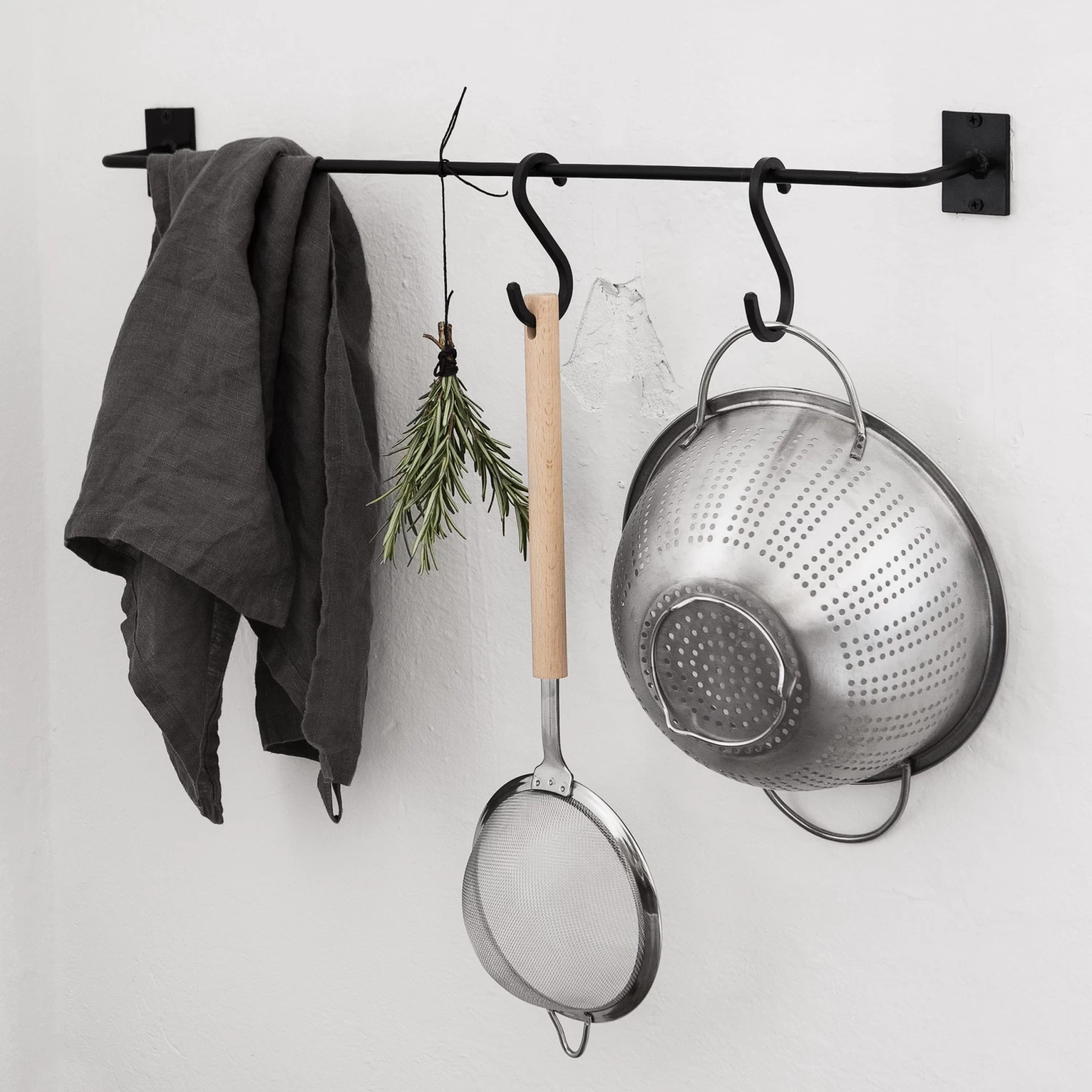 Stabiler und flexibler S-Haken aus Eisen mit glatt gehämmerten Seiten. Der Haken hat verschiedene Durchmesser, je nachdem welche Seite du verwendest. Innerer Durchmesser 2,5 cm bzw. 3,5 cm. Der Haken ist nicht nur superschick, sondern kann für allerhand Aufhängung an Stangen, an Metallgittern oder anderen Orten benutzt werden. Auch in einer größeren Größe erhältlich.