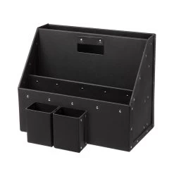 Tragbarer Schreibtisch-Organizer aus starker, handvernieteter Pappe, den du mit Stiften, Lineal, Schere, Tacker etc. füllen kannst. Ausgestattet mit einem Griff, lässt sich das Set einfach und handlich zum Workshop oder zum Meeting mitbringen oder Zuhause ins andere Zimmer tragen.