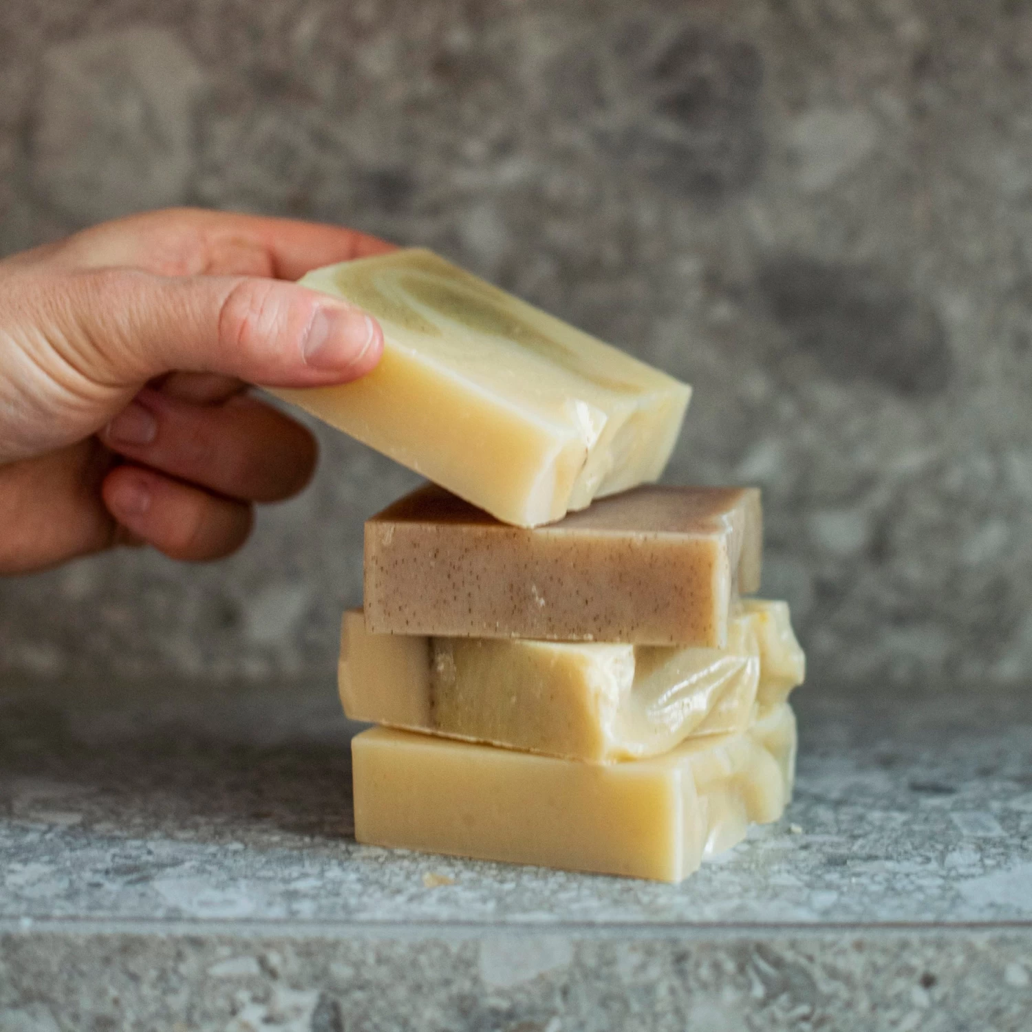 | Handgemachte vegane Seife mit natürlichen Inhaltsstoffen. Da die Seifen handgefertigt werden, hat jede Seife eine individuelle Form. Die Seife wird ohne Tierversuche hergestellt und enthält keine Parabene, Palmöl, SLS, Zitronensäure oder Petroleum. Die Seife wiegt 100 Gramm und ist in verschiedenen Sorten erhältlich. Sie kann sowohl für die Hände als auch für das Gesicht verwendet werden, aber achte darauf, dass du keine Seife in die Augen bekommst. Inhaltsstoffe: Olea, Europaea Fruit Oil, Aqua, Cocos Nucifera Oil, Helianthus Annuus Seed Oil, Sodium Hydroxide, Ricinus Communis Seed Oil, Butyrospermum parkii (Shea Butter), Melaleuca Alternifolia Leaf Oil. |