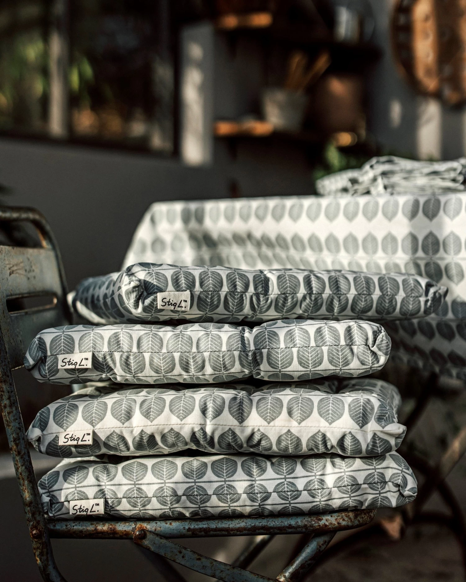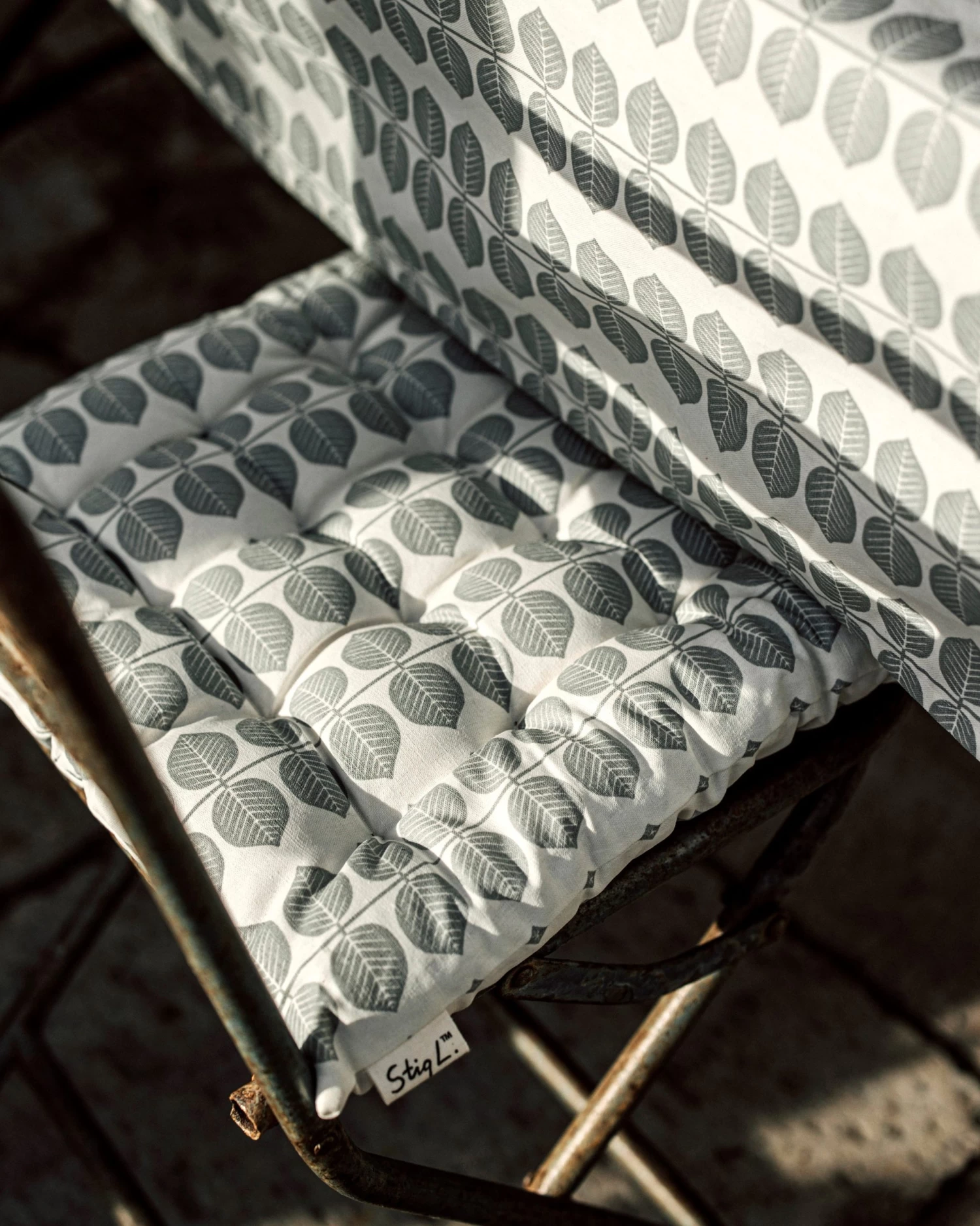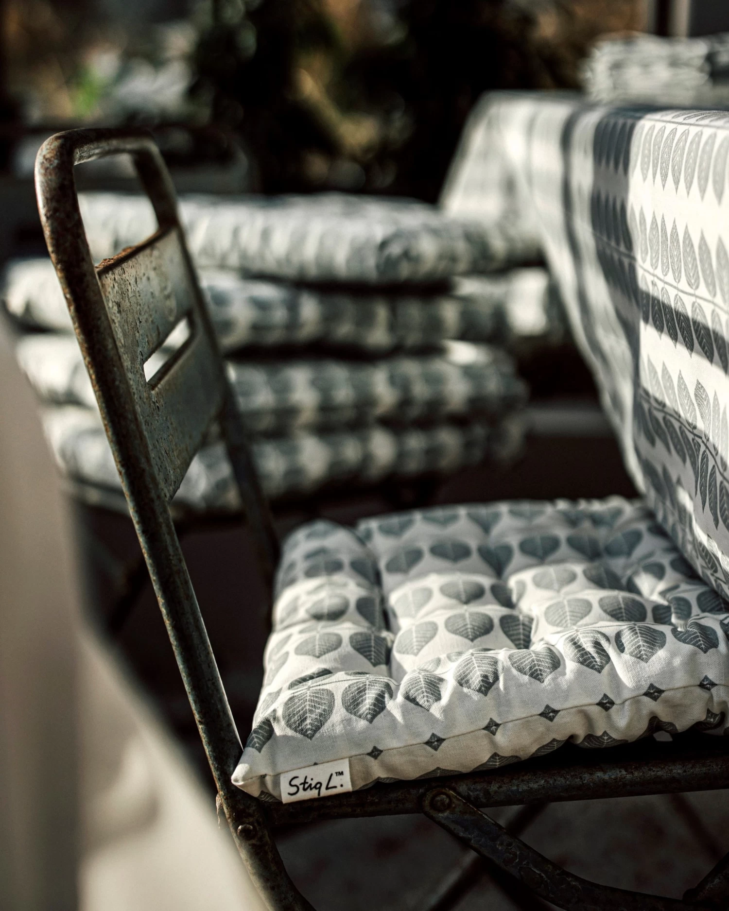 Stilvolles Sitzkissen mit Druck des zeitlosen Musters Berså von Stig Lindberg. Das Sitzkissen passt auch gut zu unseren Glas- und Leinenservietten mit demselben Muster und ist sowohl für den Innen- als auch für den Außenbereich geeignet.