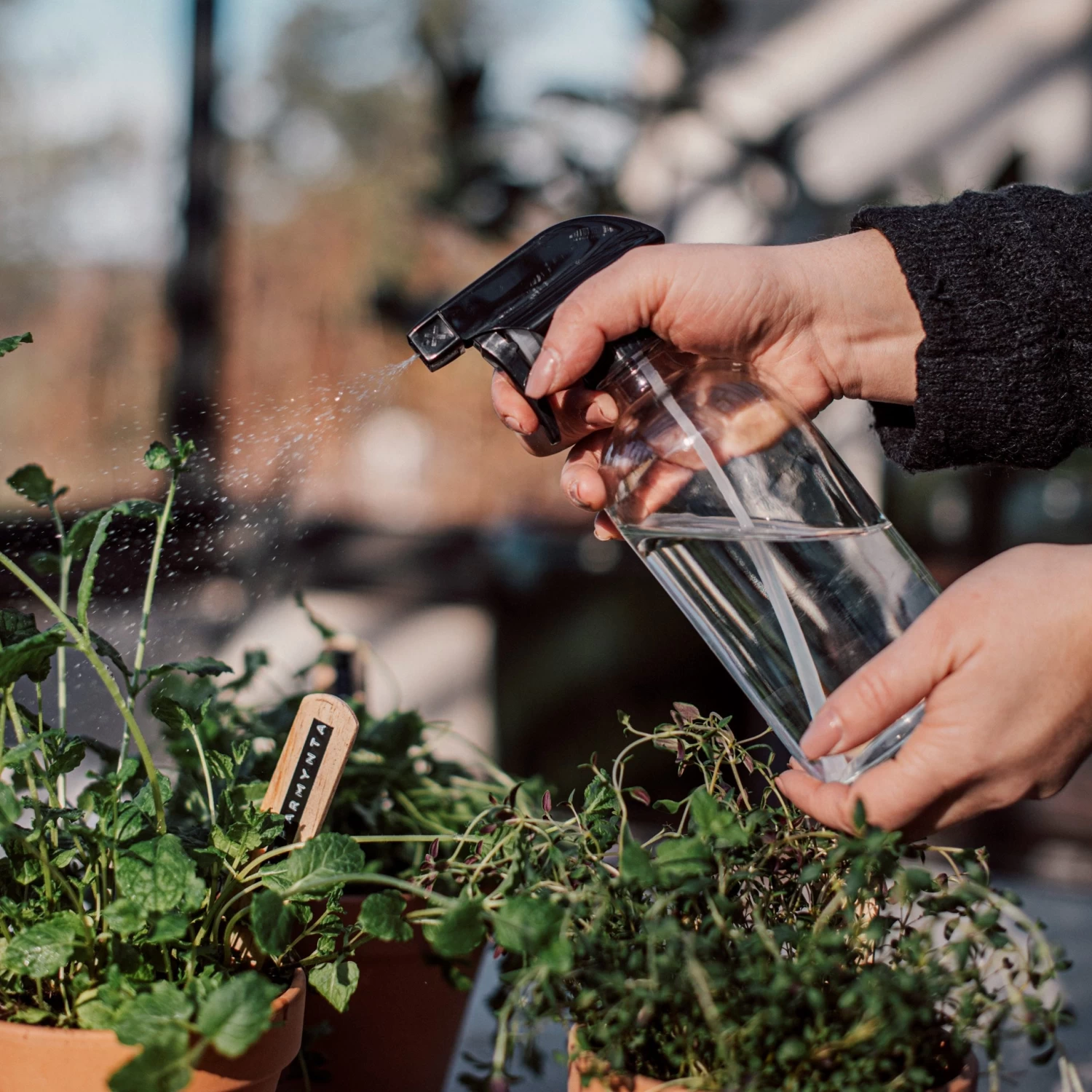 Eine Sprühflasche aus transparentem Glas. Perfekt, wenn deine Pflanzen eine Dusche brauchen. Fasst 500 ml.