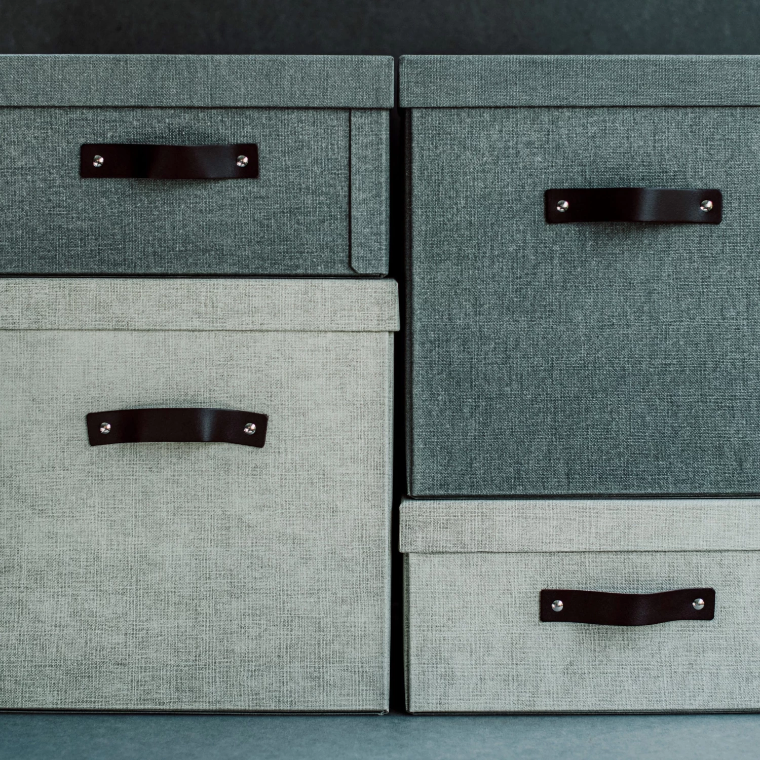 Var sak på sin plats. Oavsett om du ska förvara familjefoton eller gamla fakturor så gör den här boxen jobbet! Snygg och stilren förvaringsbox i canvas med dekorativt och praktiskt läderhandtag och lock. Kan staplas och passar in i de flesta bokhyllor och rumsavdelare. Den snygga tygliknande finishen inger en stilren, städad känsla. Fria från gifter och ftalater och tillverkade i enlighet med Fairtrade, KRAV och är även Svanenmärkt. Boxen levereras omonterad i platt paket.