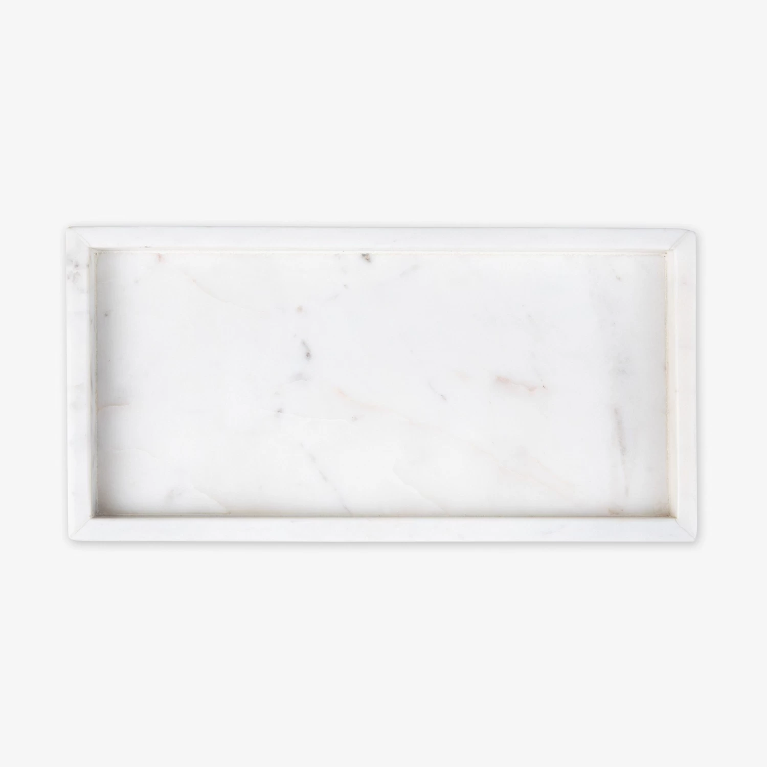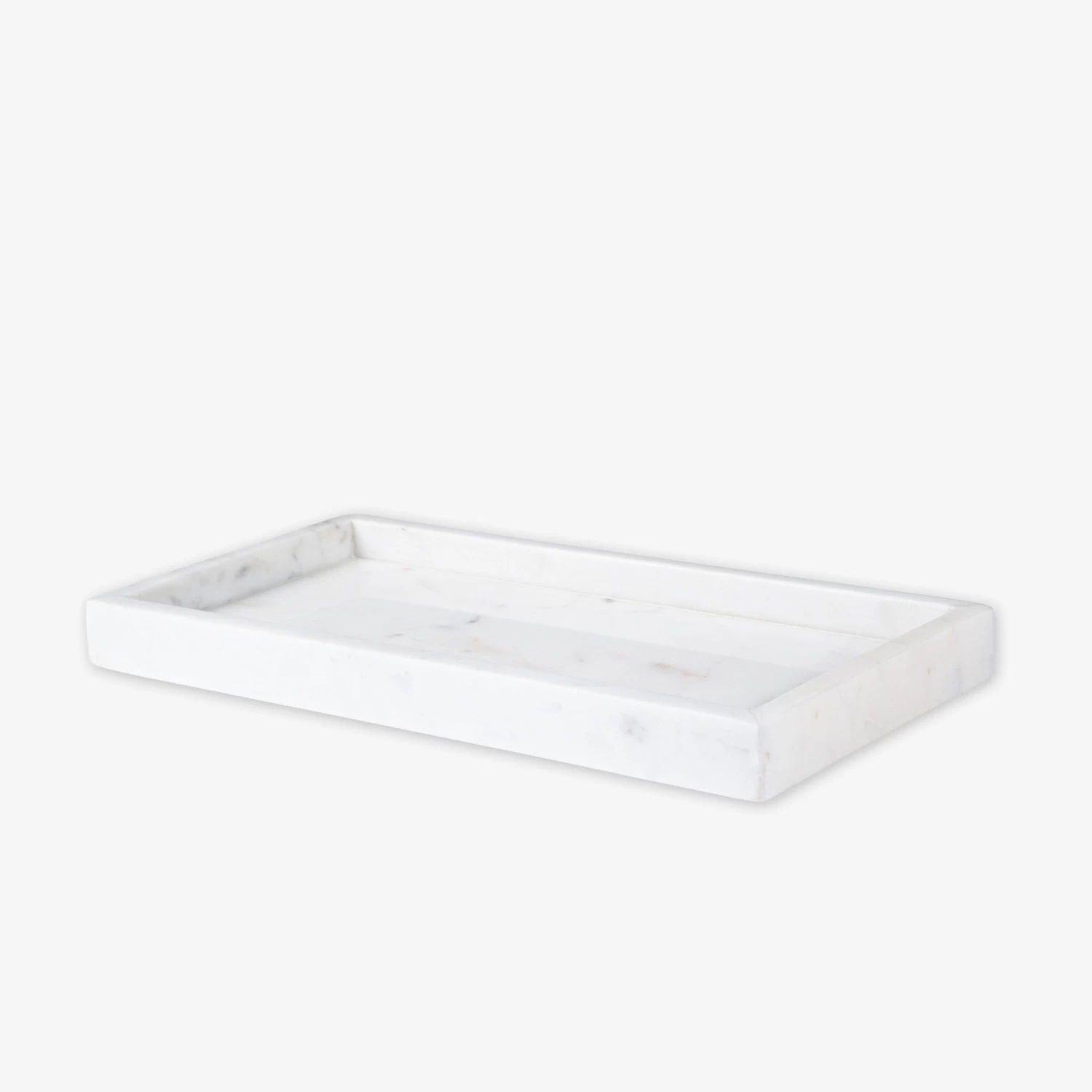 Stilvolles Tablett aus weißem Marmor mit Kanten. Geeignet für die Aufbewahrung und Präsentation in Küche und Bad. Dazu passen die schönen Gläser im gleichen Stil.Maße: B 15 L 30 T 2,5 cm.Marmor ist ein natürliches Material, das sowohl in der Farbe als auch in der Form variieren kann – kein Produkt gleic
