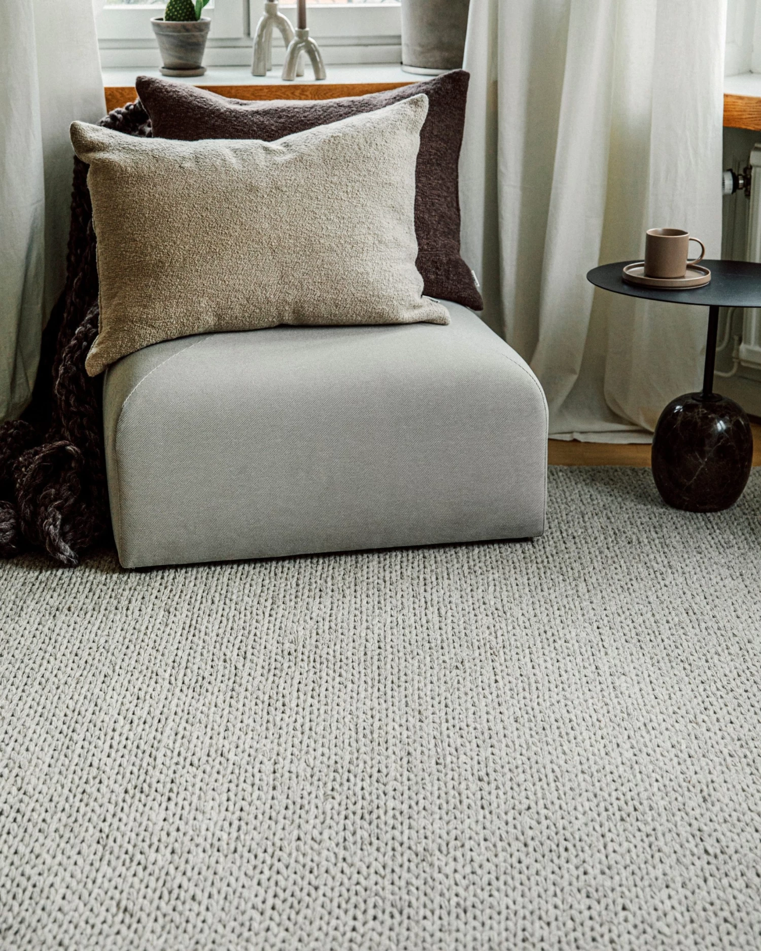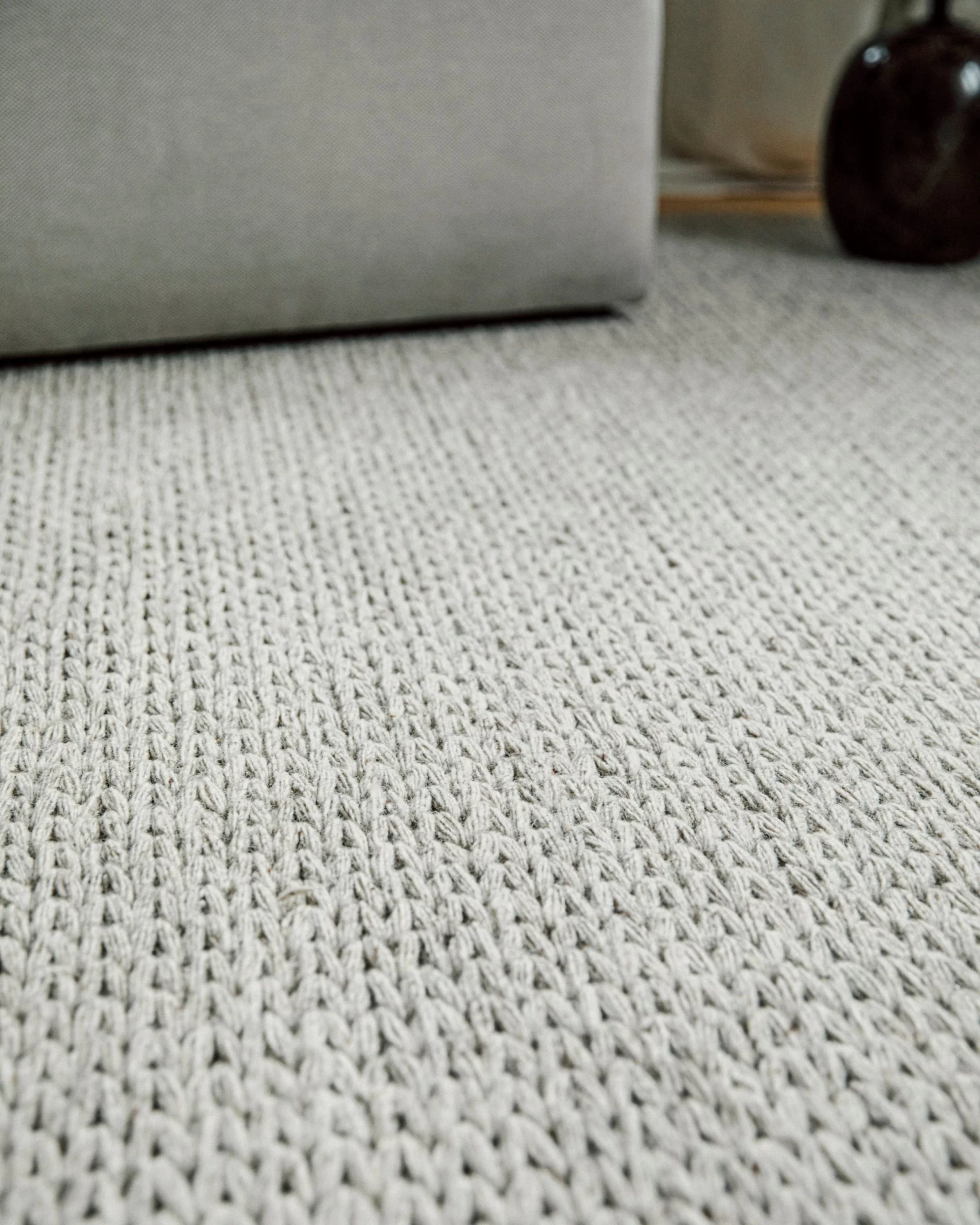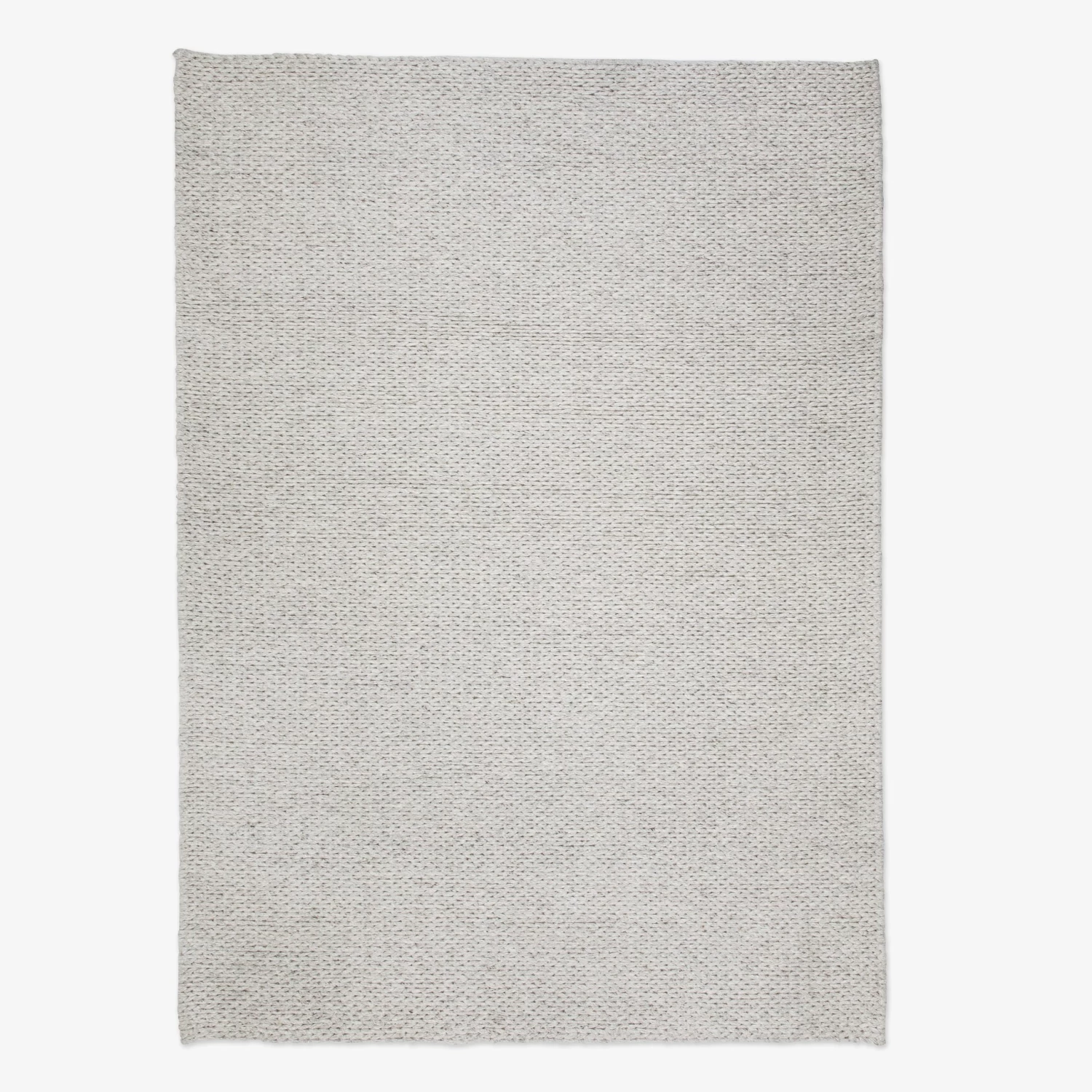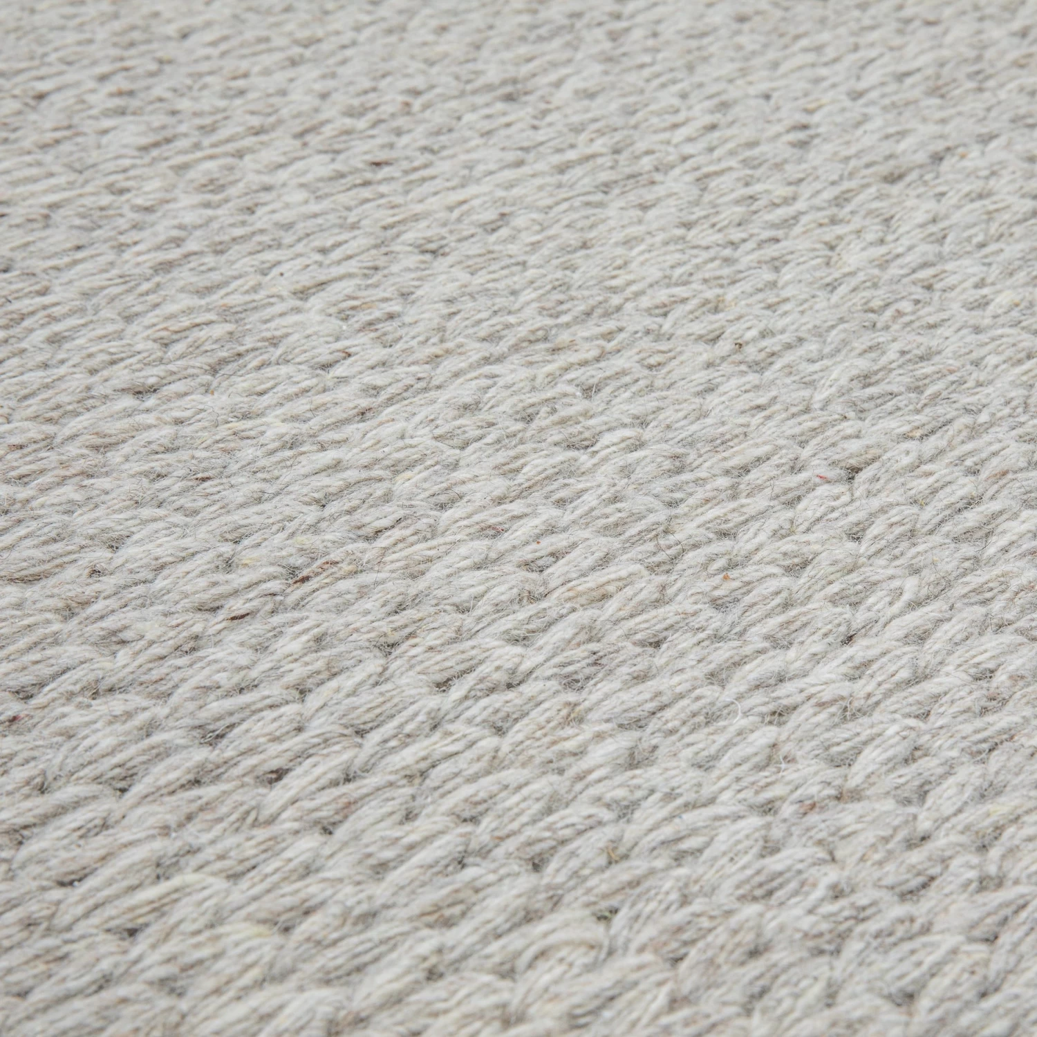 Ein Teppich in einer mittleren Größe mit einem geflochtenen Muster, das eine interessante, subtile Struktur erzeugt. Das Geflecht besteht aus 70 % Wolle und 30 % Baumwolle.Wolle ist ein von Natur aus schmutzabweisendes und langlebiges Material und hat selbstreinigende Eigenschaften. Die äußere Schicht der Wollfasern besteht aus einer Schutzschicht, die das Anhaften von Schmutz verhindert. Dank des hohen Feuchtigkeitsgehalts der Fasern ist Wolle auch antistatisch, was bedeutet, dass der Teppich weniger Staub anzieht.Die Wolle, die wir für diesen Teppich verwendet haben, ist naturbelassen und ungefärbt, wodurch jeder Teppich sein eigenes, einzigartiges Aussehen erhält.Maße: 170 x 240 cm.Da die Teppiche in den meisten Fällen aus natürlichen Materialien bestehen und/oder von Hand gefertigt werden, kann es zu geringfügigen Abweichungen bei den Maßen kommen.Die Wolle, die für die Herstellung unserer ungefärbten Teppiche verwendet wird, stammt von Bikaneri-Schafen, deren Wolle eine glänzende, leichte und für Teppiche geeignete Wolle von guter Qualität ist. Dank des schonenden Reinigungsverfahrens ohne Chemikalien behält die Wolle ihre natürlichen Eigenschaften. Das sind die einzigartige Farbe der Wolle und die natürliche, schmutzabweisende Oberfläche, die wiederum für einen pflegeleichten, langlebigen und schönen Teppich sorgt.