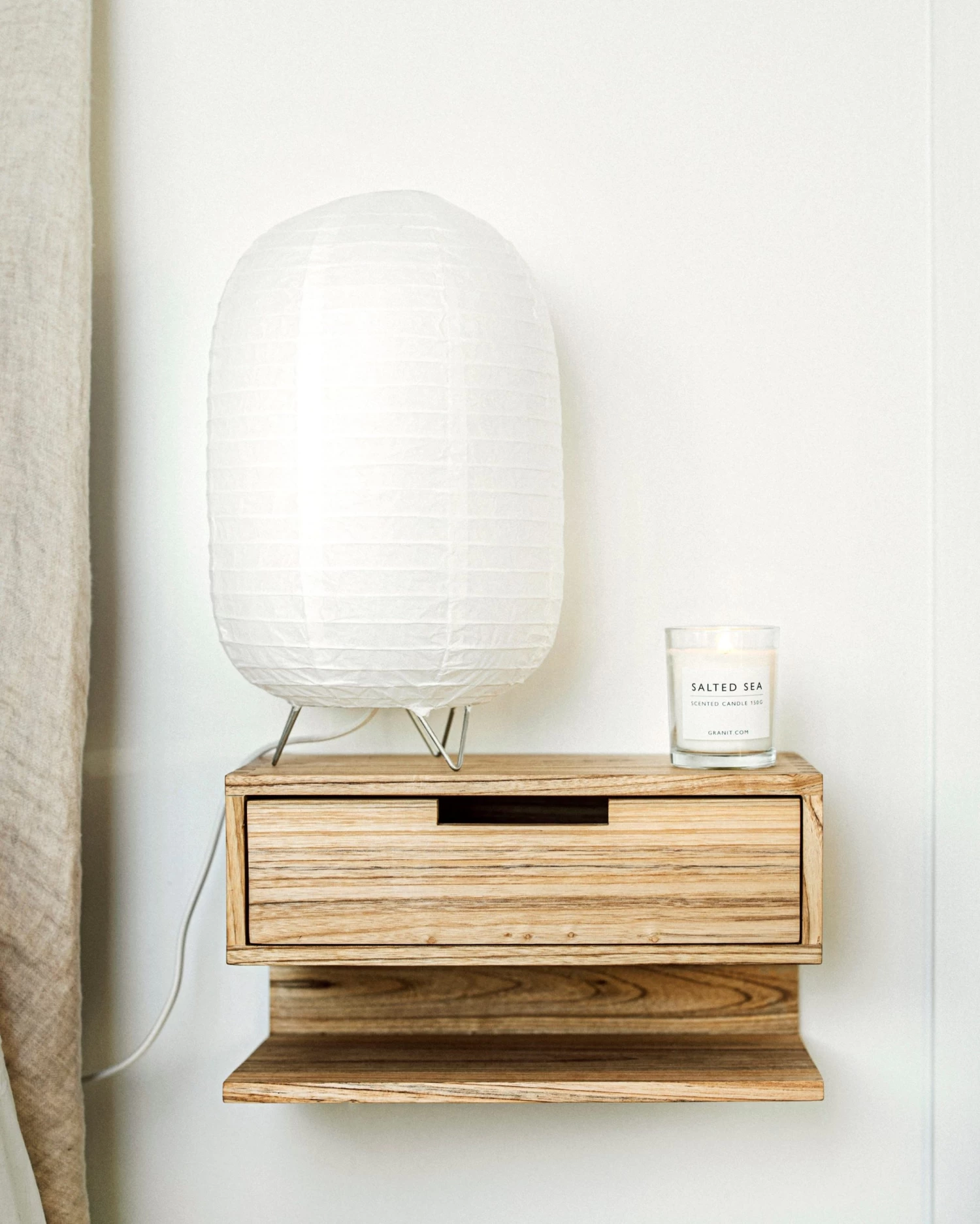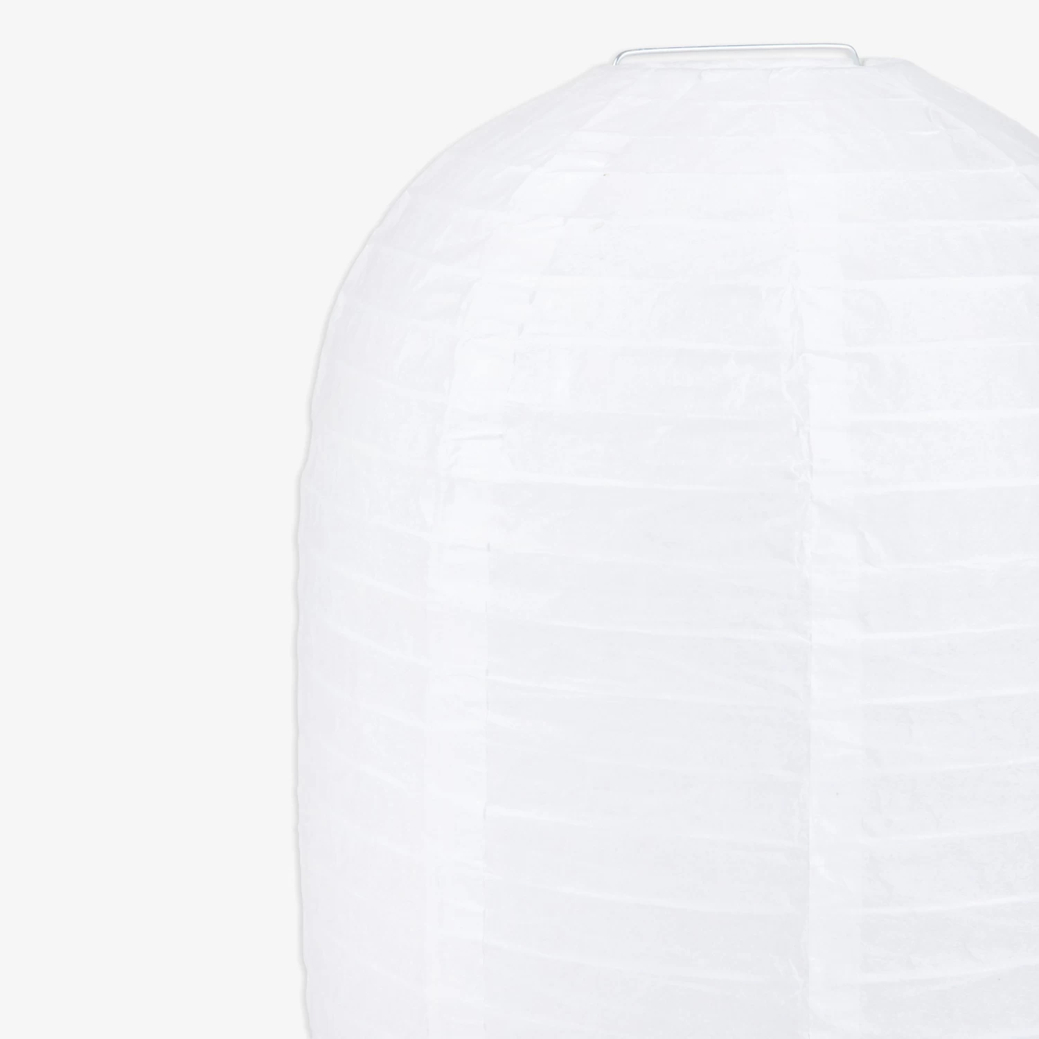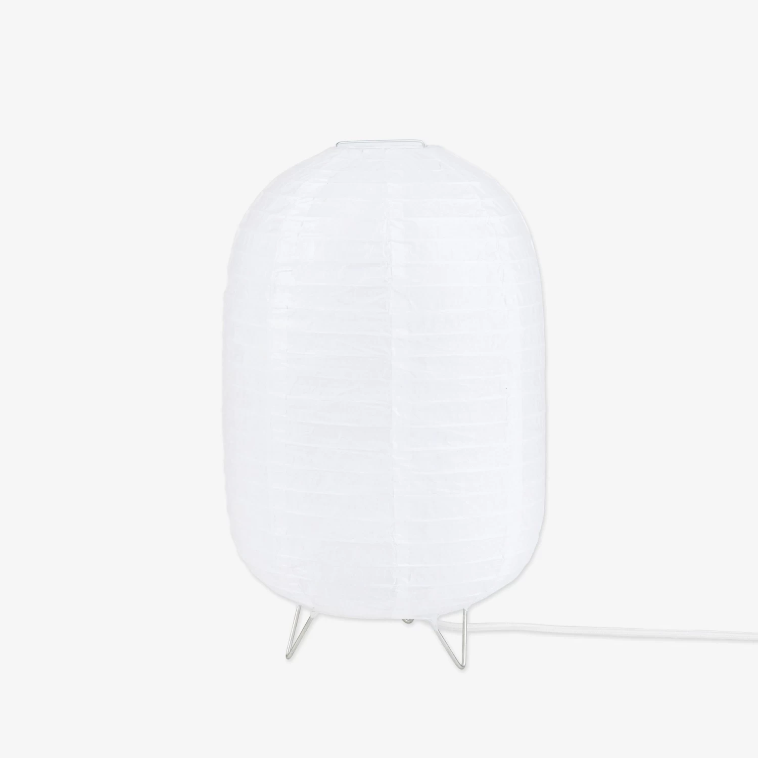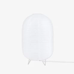 Einfache und stilvolle Tischlampe aus Reispapier, passt gut auf den Nachttisch, Beistelltisch oder auf die Kommode. Die Lampe hat weiße Metallfüße. Inklusive Kabelsatz mit passendem Sockel für E14-Glühbirnen. Glühbirne separat erhältlich.
