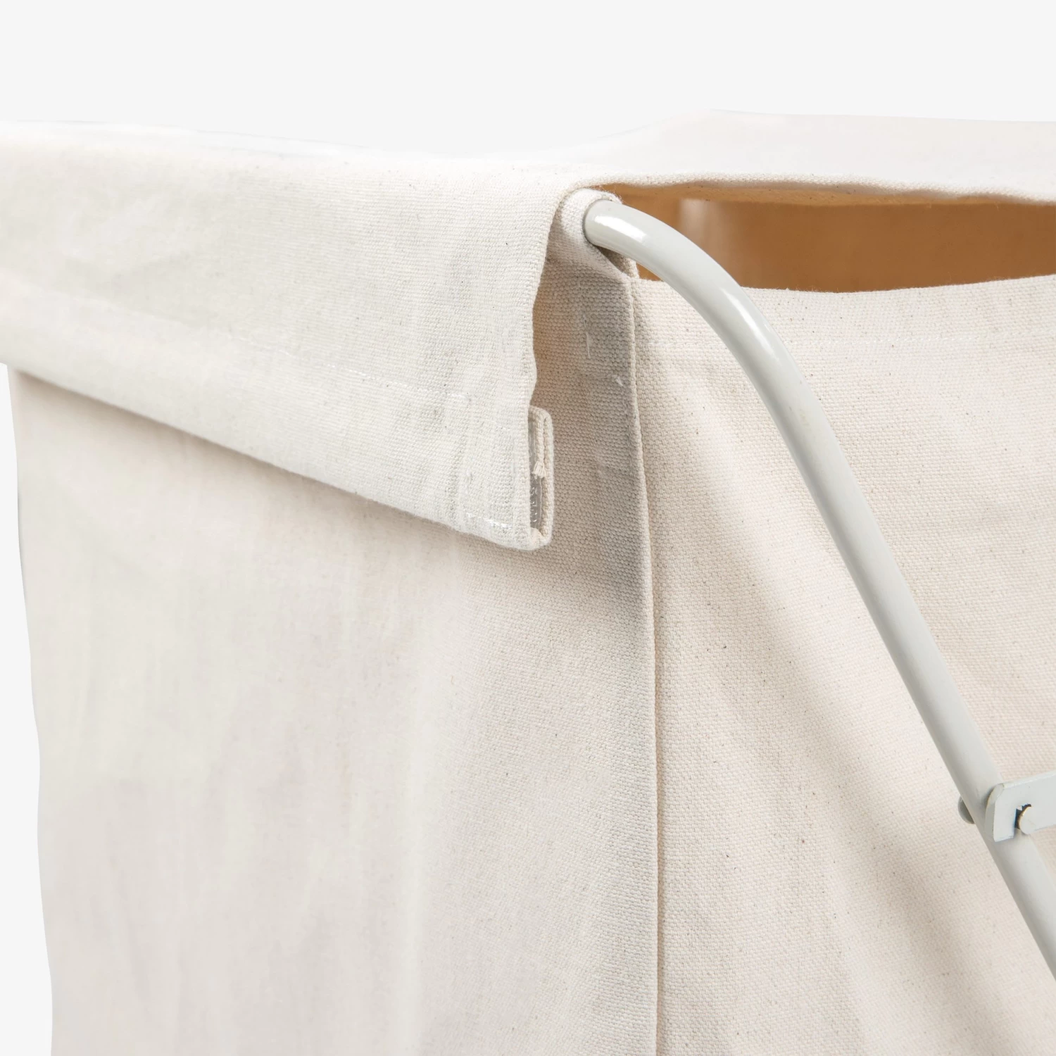 Material des Wäschesacks: recycelte Baumwolle. Material des Gestells: Metall