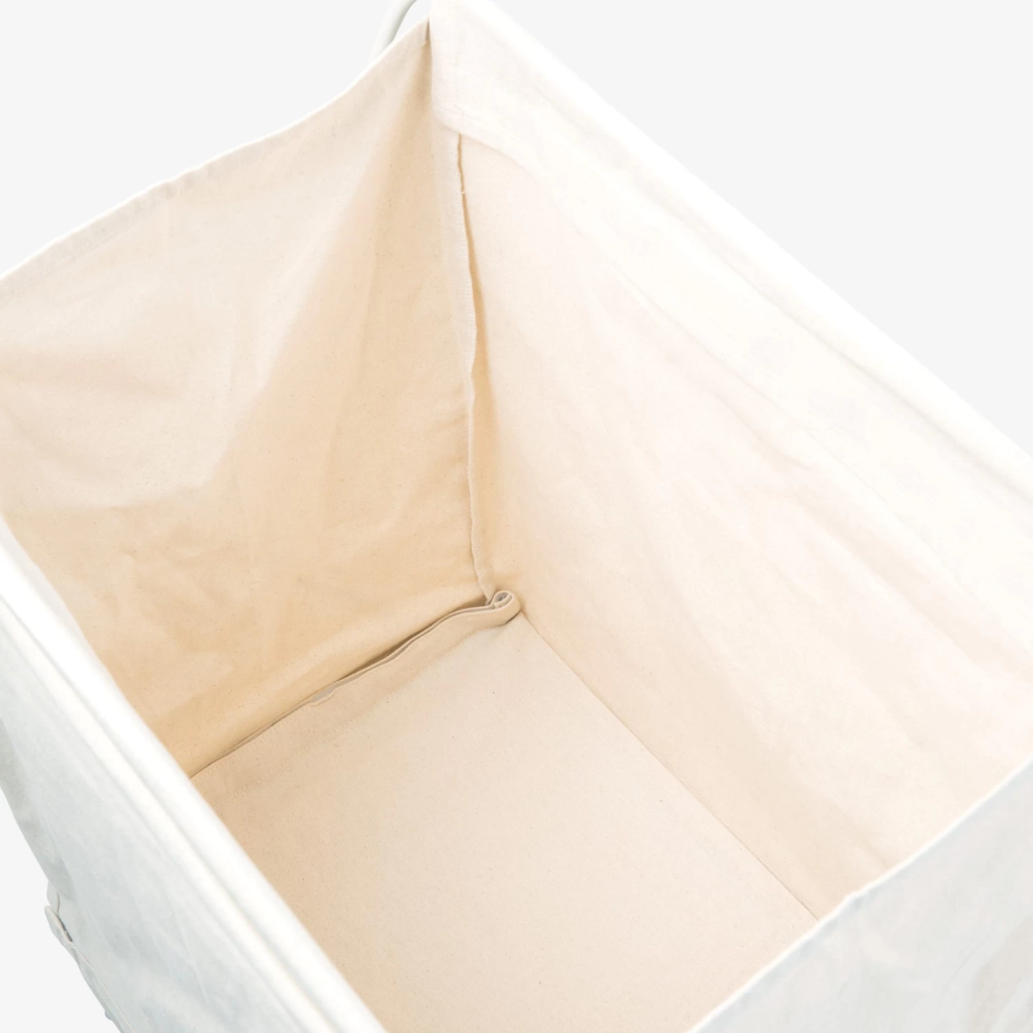 Schicker Wäschekorb in einer neutralen, hellbeigen Farbe, die sich gut mit dem Badezimmer oder Schlafzimmer harmonisiert. Der Wäschesack ist aus recycelter Baumwolle und das Gestell aus Metall. Der Wäschesack kann vom Metallrahmen abgenommen werden und ist maschinenwaschbar. Der Wäschesack hat 300 gsm, was den Stoff schön schwer macht. Der Wäschekorbbeutel ist also recht dick und strapazierfähig.