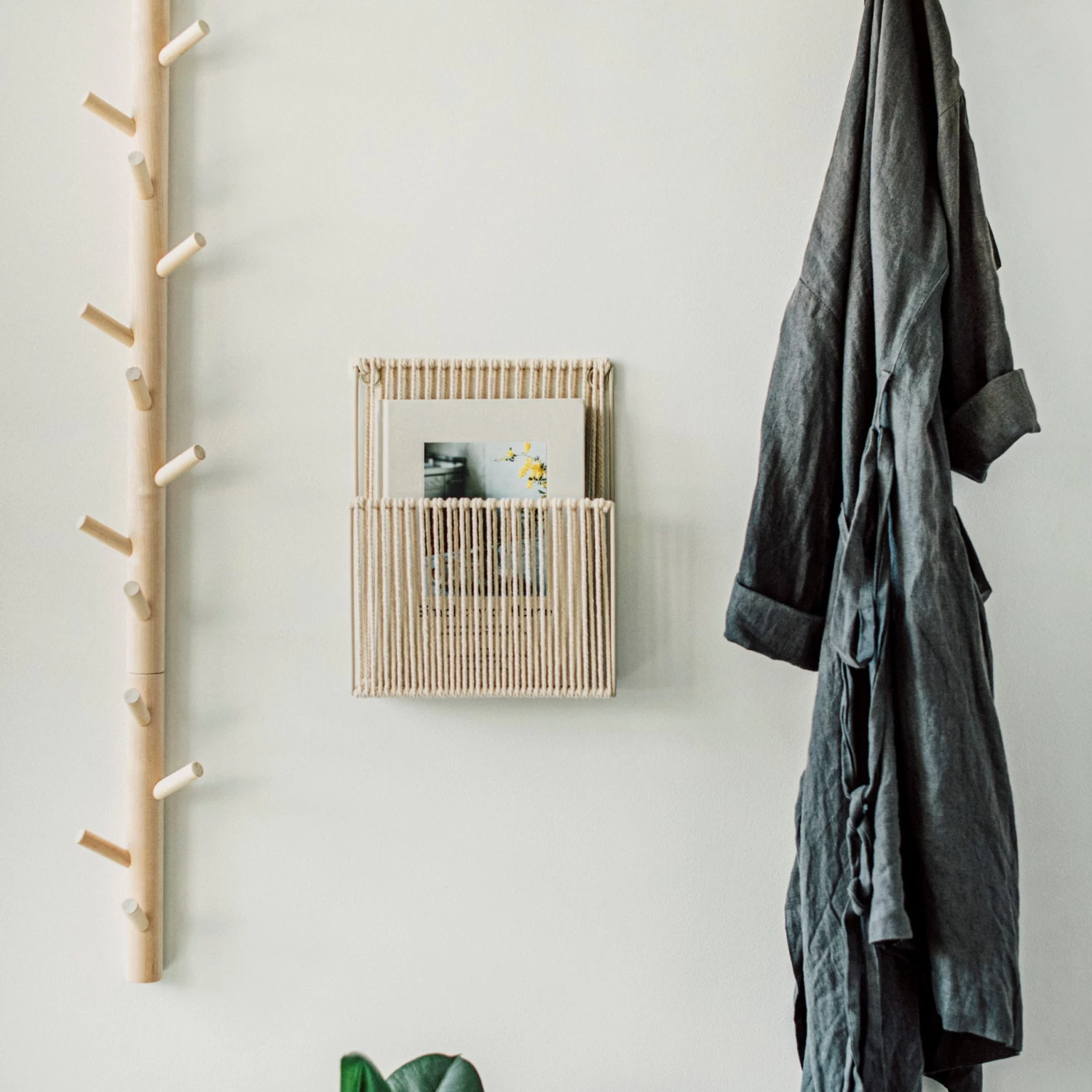 | Stilvoller Zeitungshalter aus Metall und Baumwolle. Der Halter wird mit zwei Schrauben an der Wand befestigt. Denke daran, die für deine Wand geeigneten Schrauben und Dübel zu verwenden. Maße: 30 x 24 x 6,5 cm. |